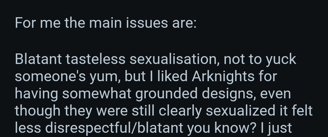 >>6268359 >нахлуныли массы разных людей необработанных зомбированием секты аркнигеров все пошло по пизде Вот это вот сейчас в самую точку. Я вообще в гачи не играю и для меня этот кал объективно кал, как и все гачи. Заводики? Ну я наверно тогда лучше сратисфакторио обмажусь не? Всё остальное в этой гаче дженерик кал, как я вижу, не цепляет, а даже раздражает порой. Играю 2й день, тупо превозмогая, хз зачем, может думаю что ну вот вот прям щас начнётся вау калтент попрёт, но чёт сомнения уже