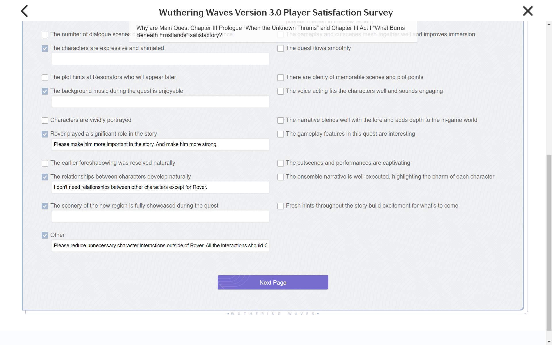 >>6273632 Я уже тебе сказал. Его мнение - это требование чтобы ему сделали так как ему нравится. Так как ему нравится - он считает верным. А тот подход куро которые делают к квестам он считает не правильным - потому что ему не нравится. Но то что ему не нравится и тебе, возможно, не нравится - не значит что это плохо или неправильно. Что этот подход к построению сюжета и истории, который куро практикуют аж с 1.1, не верный. Он вуву дропнул на старте, думпостил с табличками ожидая когда она там умрет, а когда начала хайповать, врывается и требует чтобы теперь под него перестраивали сюжет.