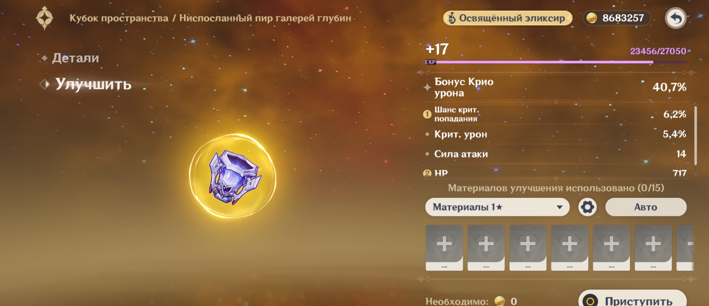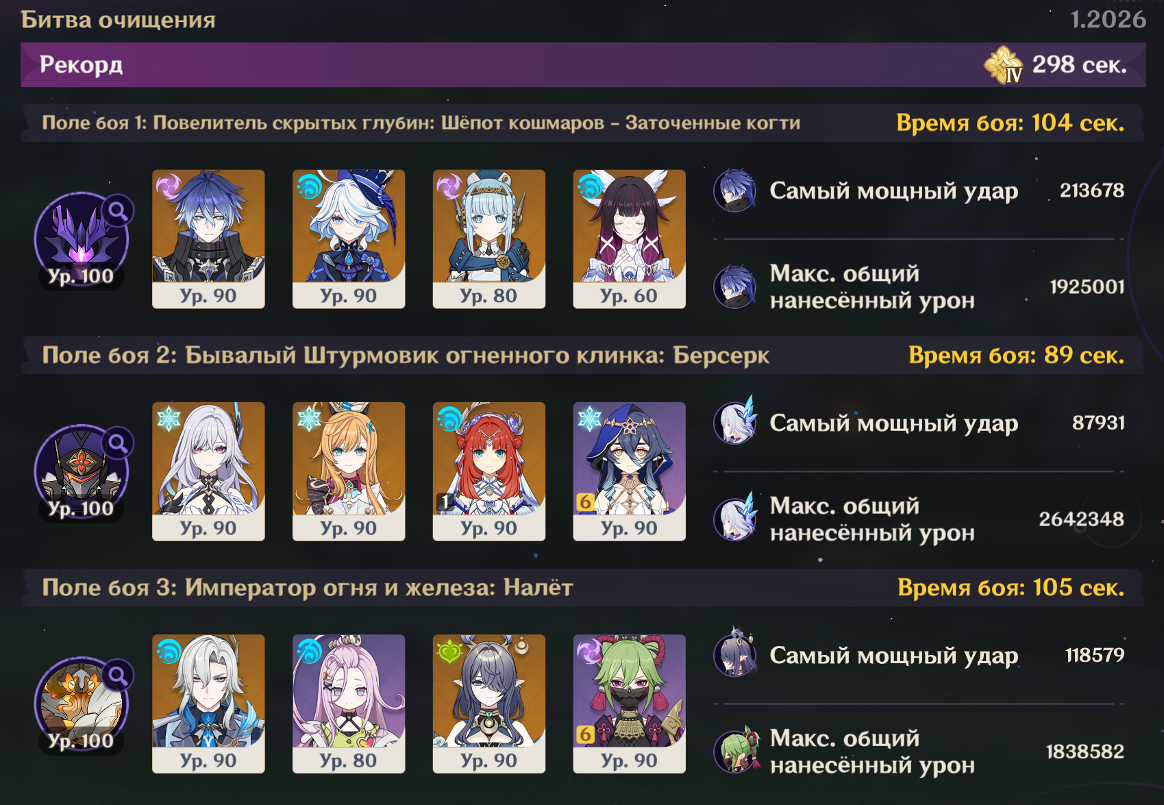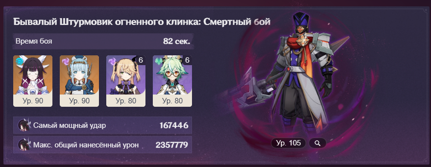 С крафтом и без конст вот такой результат. Но мне в артах конкретно на Нефер дохуя критшанса навалило, и урон пока выше этого разогнать не выходит. Надо минимум 200 крит.урона, чтобы позоричные 120 сек превратить в 110