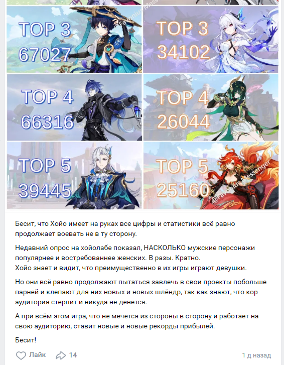 У вас одна и та же песня из патча в патч, как вы сами себя не заебали и не начали для разнообразия писать "это лучший надриск от папы Ляо за последнее тысячелетие!"
