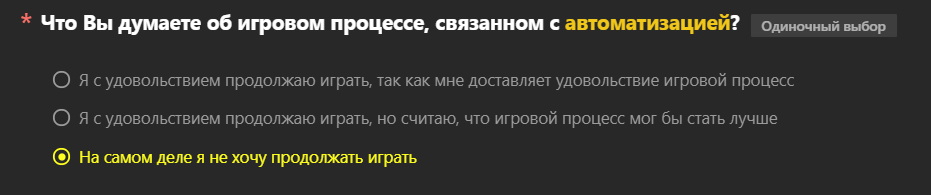 Во всех опросниках прошу больше заводов и реворкнуть нахуй обучалки.