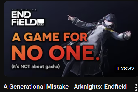 Вчера спать лег, а полтреда потерлось. Вкину еще разок, уж слишком протык охрененно за ушкфилд пояснил: https://youtu.be/ItrsvQKOWYU?si=qHRDiCMrcmyYFxpS[РАСКРЫТЬ] просто 2 диалога начало на 40:30. Один из первой беты, второй из релиза, одна и та же сцена с больной лолькой, я еще кстати дня 3 назад говорил что единственная приличгая сцена в 4й долине Эндфилда, да и то совсем не докрученная и не вызывающая эмоций была. Падисары к херам собачьим отретконили орипатию, чтоб зумерки-паймончики не расстраивались. Чел очень годно подытожил, что на протяжении всех бета-тестов они каждый раз упрощали Эндфилд, чтоб он вообще никого ничем не мог отпугнуть или обидеть: вырезали "сложные" бои и превратили всё в нудное затыкивание лк; дважды упрощали завод и по итогу сделали его за счет чертежей скипаемой механикой вообще без изюминки; пытались копировать Дес стрэндинг с его перемещениями по локациям и сделали казуальные зип лайны мимокроков на каждом углу; хотели не поднимать спорные темы в повествовании и по итогу отретконили лор первых ушек в кашу для геншинят. Короче хотели сделать игру для всех, а получился стерильный боящийся собственной тени кал для новой аудитории(которой он тоже быстро наскучит, как выйдет что-то посвежее). Грустно, что пиздец, думал Ляо не такой ссыкун, а тот челик прям футади из альфы показывает, где всё было не так стерильно и были реально интересные моменты в боевке, взаводах(механика отходов производства) и в истории.