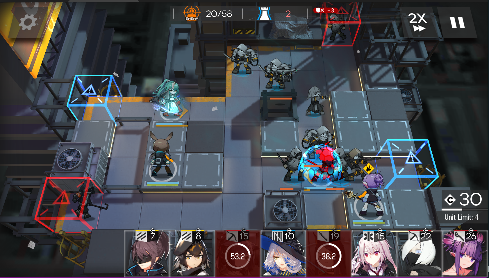 >>6299432 Ну у тебя, как правильно указали, оба дамагера почему-то стоят там, где врагов меньше. А танк раньше дамагеров выставлен справа. Как-то так примерно стоит расставить - у меня перекач для этого уровня, так что только два дамагера. Но ещё два слота свободны. Возьми пионера-вангарда, у тебя дп не генерится нормально. Мобы вроде не тяжелые, Шау скинет на е0 наверное их. А справа киллбокс из всех остальных.