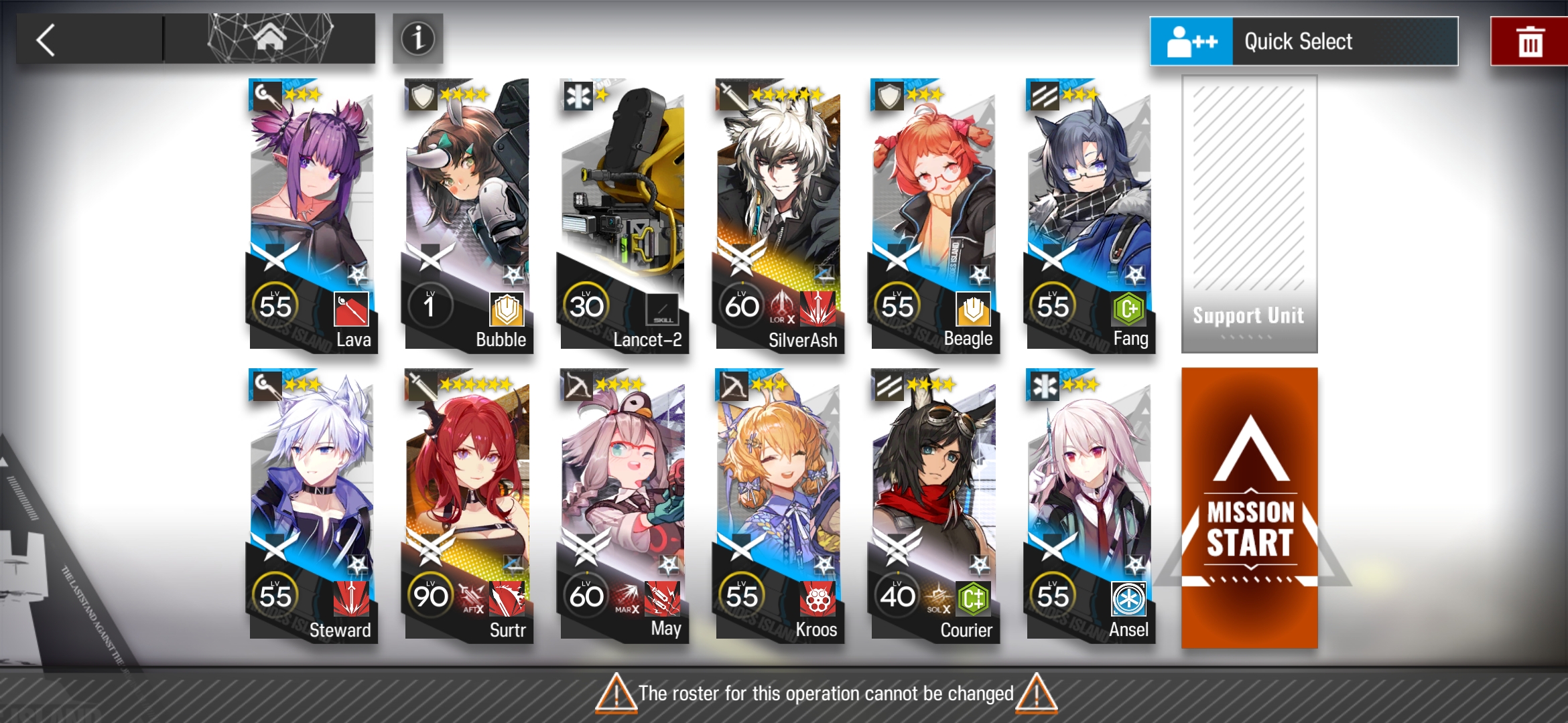 Не слушай пюрешек с лоу айкью, советующих Сарию и Багпипу. Багпипа - сейчас просто плэйсхолдер до тех пор пока ты не обзаведешься лисомамкой/Инес, да и так без нее можно обойтись(та же 4звездная Миртл, плюс какой-нибудь дешевый по деплою гвард). А Сария хоть и хороший хилотанк, но в твою пачку с Хошей не особо вписывается, зачем тебе два дефендера, кто тебе вместо них обеих дамаг наносить будет?