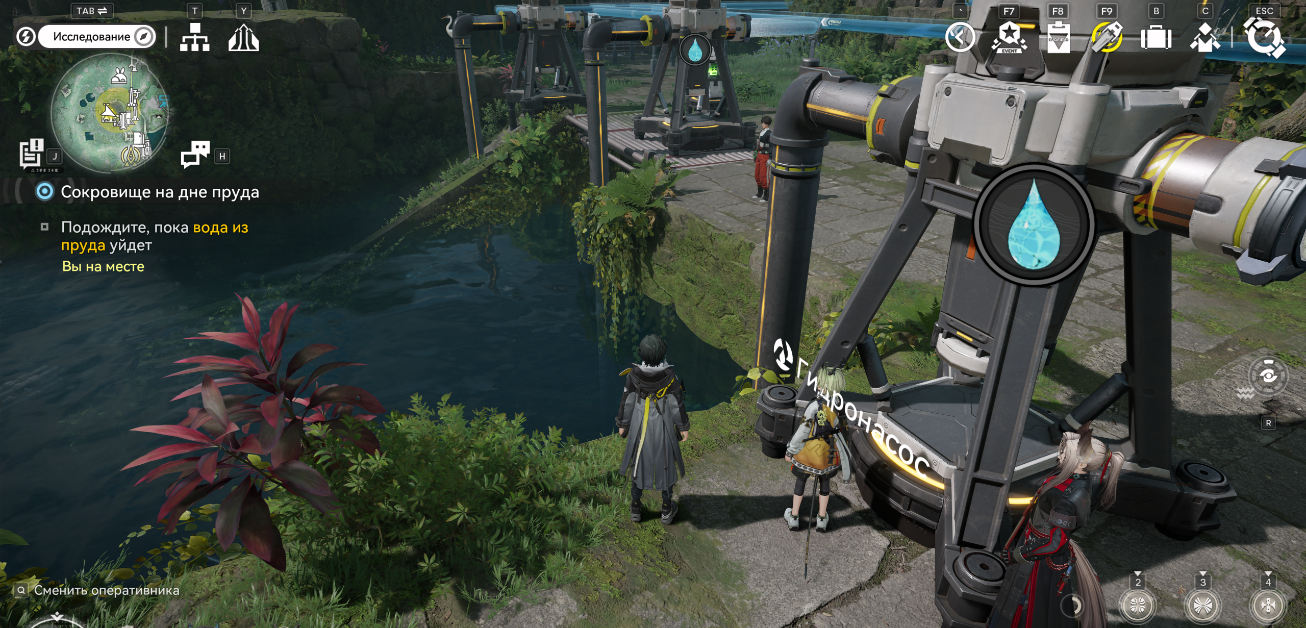 блять загадка охуенная в китаекале, вот тебе пруд на 40000 воды, его надо вылить, чтобы подобрать говно на дне. один насос качает 1 воды в секунду, вокруг можно поставить максимум пять насосов. ставь насосы и жди 2 часа реального времени, пока перекачается