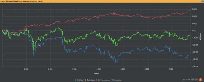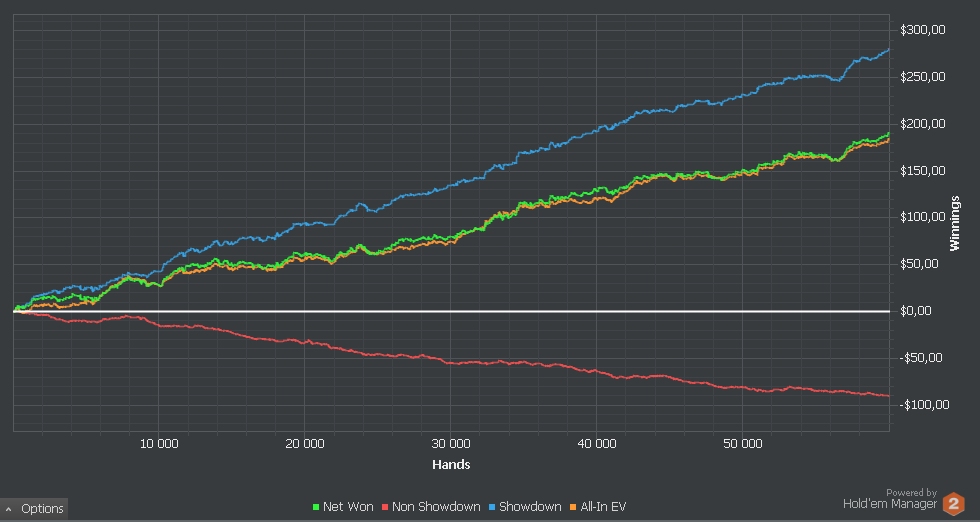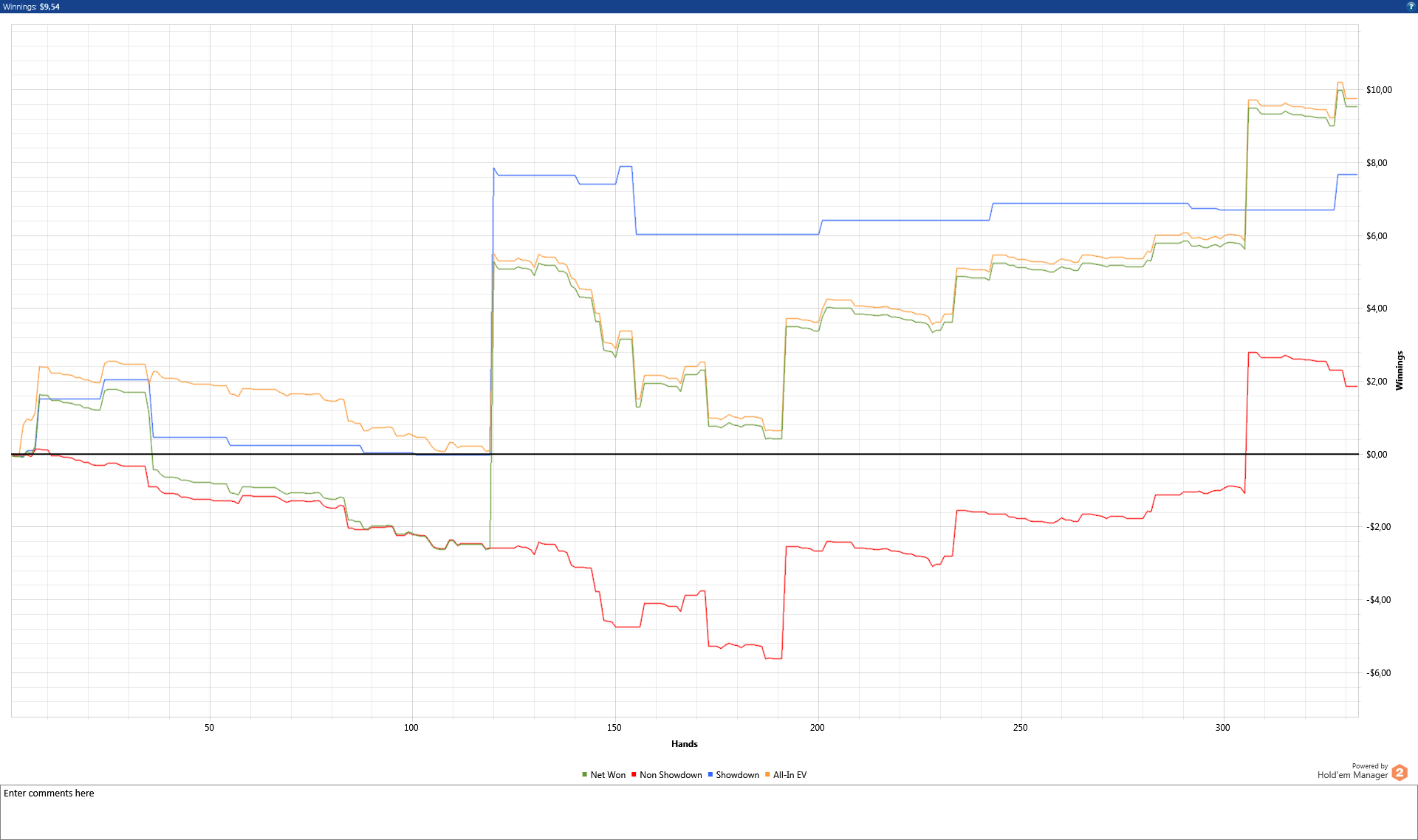 Привет покерач. Я в общем то никто и ничем не знаменит. Играю в покер около пары лет. По большому счету больших результатов не достиг. Нет, не заливал бр, не лудоманил, но и выше нл25 никогда не поднимался. Пару месяцев назад вывел остатки из рума и решил забить на покер на время. Недавно решил начать сначала. БР чуть больше 100 баксов. Играю нл10сх на ПС. Буду кидать графики за день, может раздачи, хотя тут наверно похуй всем. В общем это скорее для меня. По плану хотел бы отыгрывать 70 часов в месяц, т.к. времени свободного мало. Поэтому рук в день будет не много. Сегодня в кэш всего 40 минут откатал. Правда заходило хорошо.