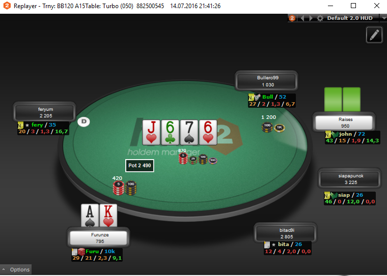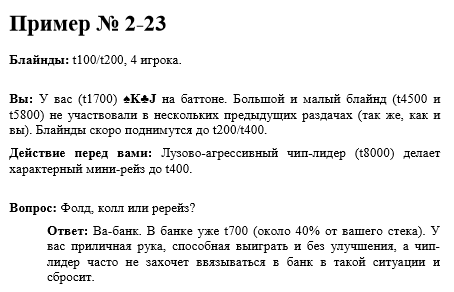 1) В ответ на рейз на терне или ривере любая топ пара или оверпара (любая) обязана отправиться в пас. То же самое касается нижних двух пар. Причина: я просмотрел уже сотни тысяч рук, и соотношение блефов и монстров для таких рейзов – около 15 на 85 в пользу монстров. Если вы увидели там один раз блеф, это не значит, что оппоненты будут блефовать в таких же ситуациях. Не выдумывайте им блефы – они на самом деле блефуют невероятно редко в этих ситуациях. Поэтому лучше чем очень дорого ловить чей-то блеф – просто выкиньте свою руку и сохраните деньги.