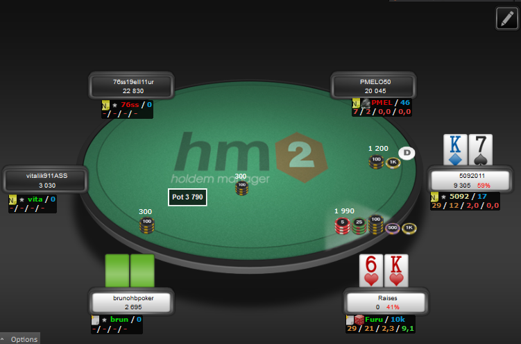 Поигрываю в покерок года 2-3, неравномерно играю, иногда месяцами не играл, иногда каждый день по несколько часов, так что в целом где-то примерно сотня-две часов наиграно наверное. Играю не на деньги.