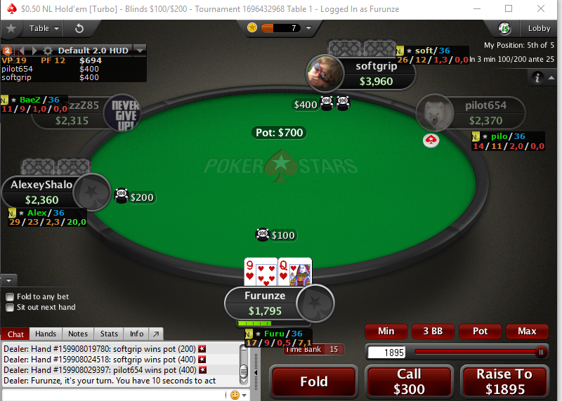 >>26364 Простое решение. Это же баббл, у тебя дохуя фишек. Лично я бы открыл 2.1бб и при одном коллере на любом борде ставил 2/5. Всем стрёмно, обожаю бабблы.