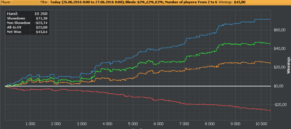 Сегодня в него не играл, решил посмотреть, сколько там собирается. В общем под конец турнира посмотрел - 52 человека в общем играло. И куча ребаев. Пока не будет нормального банкролла, все таки такое играть не буду.