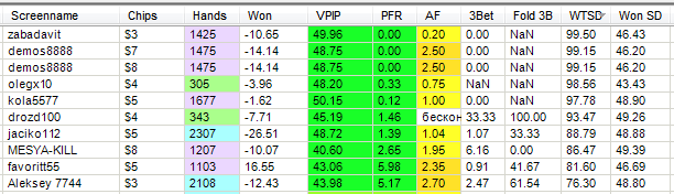 Пиздец что за столами творится. Пришлось засунуть свою агрессию себе в жопу. Какие-то ниты с нижних лимитов, куча новых фишей, картели регов, играющие друг с другом лимпами и чеками до ривера. Когда к таким подсаживаешься, начинают гадости в чат писать и выходят искать другой стол. Всю сессию к ним подсаживался. В общем интересная обстановка.