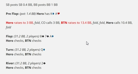 >>28213 Я понял бы, если б в первой раздаче у тебя хотя бы десятка-хай была. Но баттон же ебуче широк. Или ты посчитал, что с шд-вэлью он просто будет чек-коллить по такому борду?