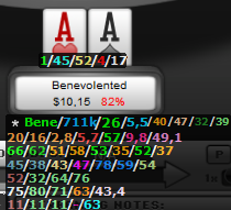 http://www.handconverter.com/hands/3001727 после этой раздачи добавил донк и донк-фолд в поп-ап. Поленился посмотреть его за столом, но я против фиша здесь почти всегда буду впереди. По тёрну пропустил очевидный рейз в надежде получить 3-ю улицу блефа. Инставколлил потбет идиот, не посмотрел на его ввсф, вссд и агру по риверу, за что был наказан. Донк 13%, донк-фолд 20. Если смотреть только на статы, то фолд флоп.
