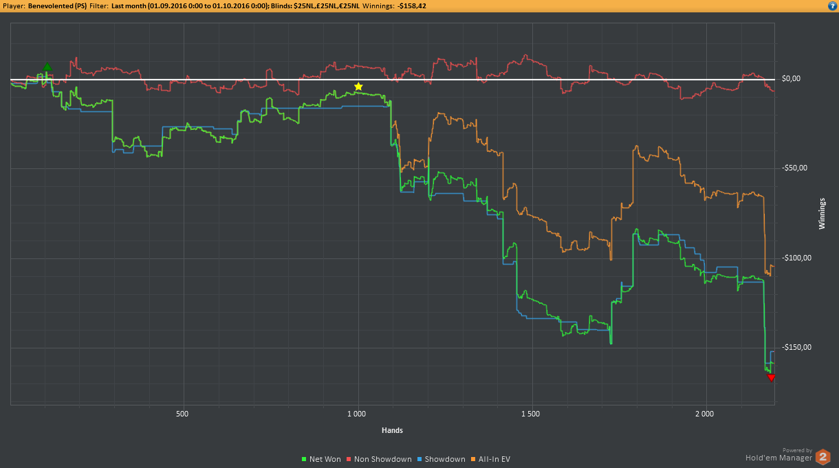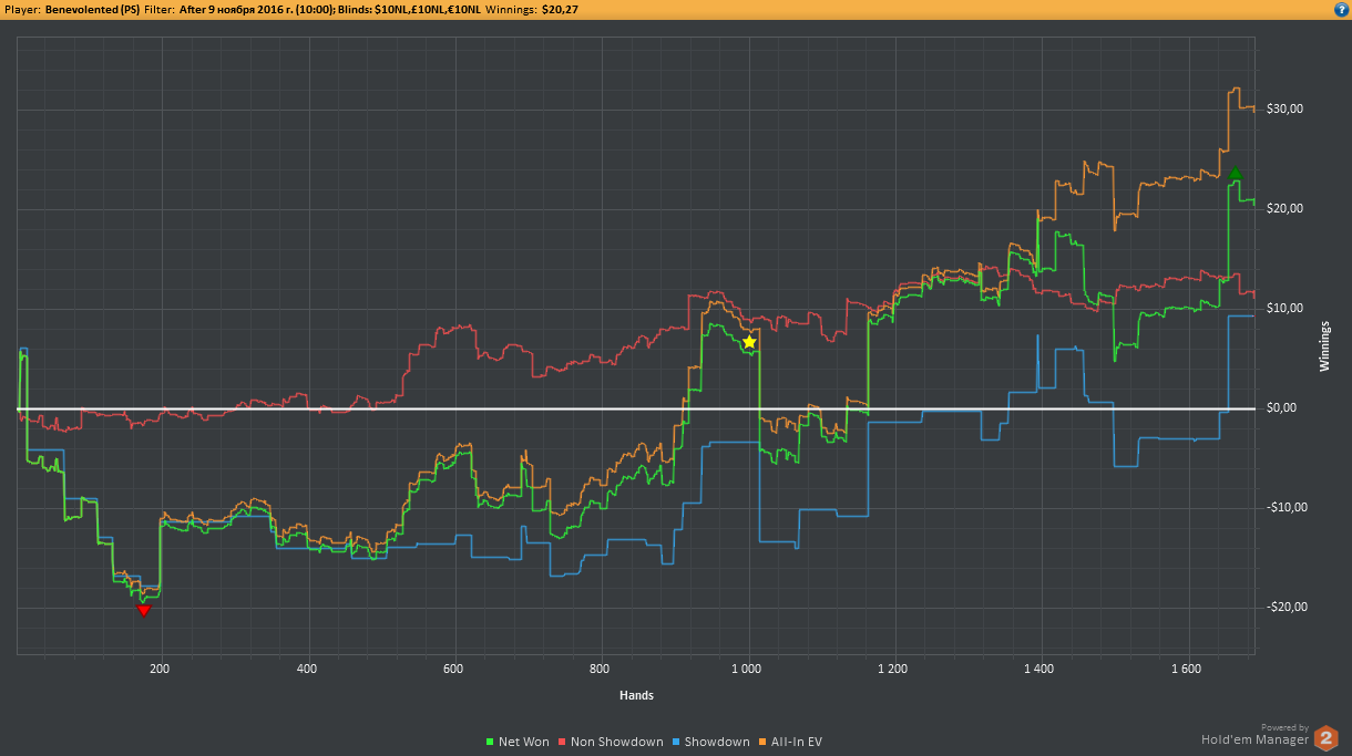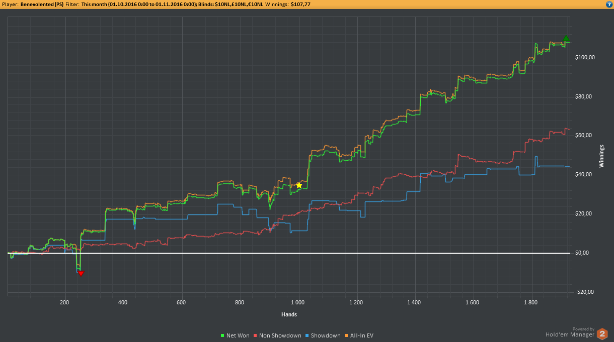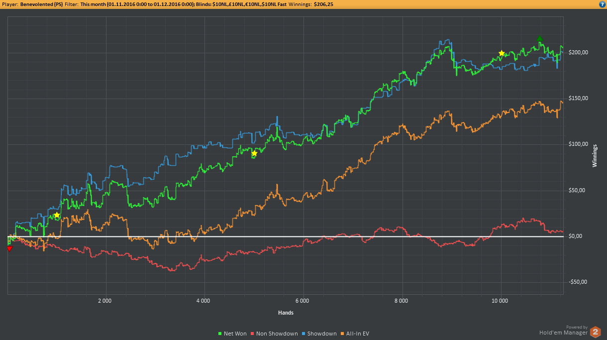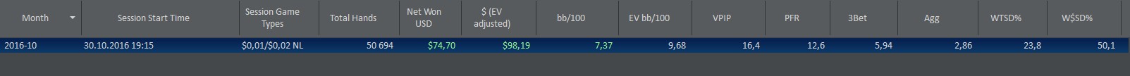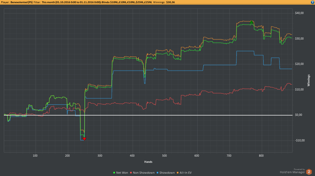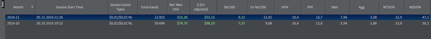 Прошлый месяц опять почти не играл, залипал в конфе только, ну и на нл2 пытался фаниться, но чё-то так себе веселье. Вроде катаешь всерьёз, но не можешь отделаться от чувства, что каждая твоя рука должна выигрывать. Статы там аномальные шопиздец. Ещё вроде выиграл $20 во фриролле и чё-то рейкбеком накапало, уже не учитываю, забываю рефрешить каждый месяц.