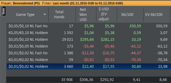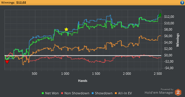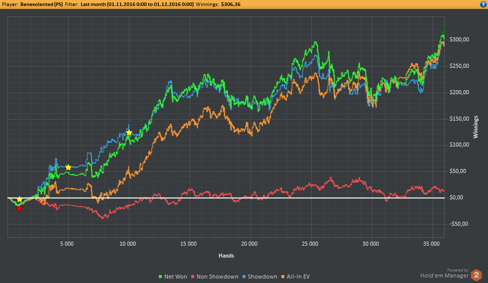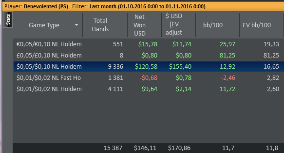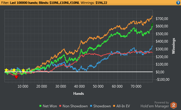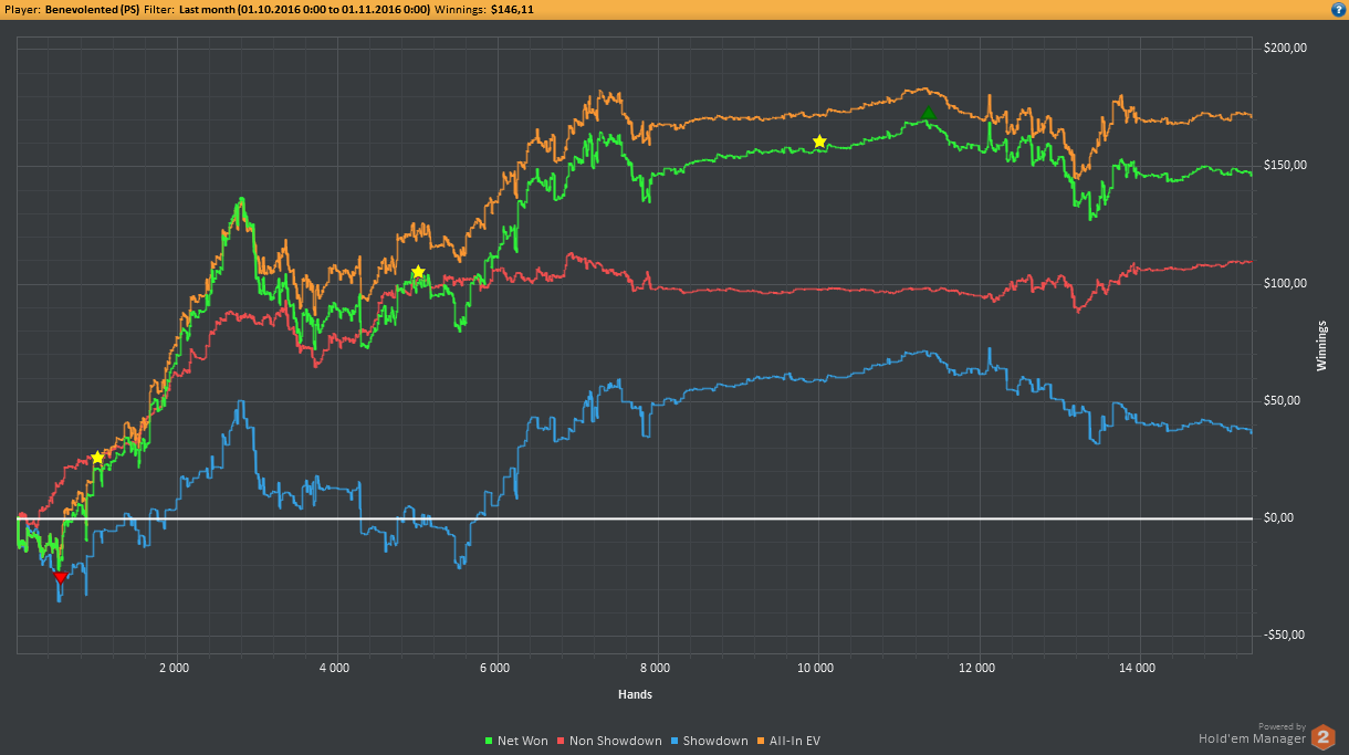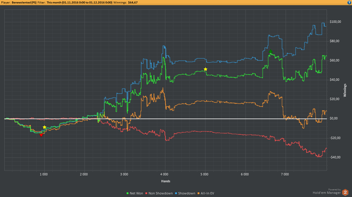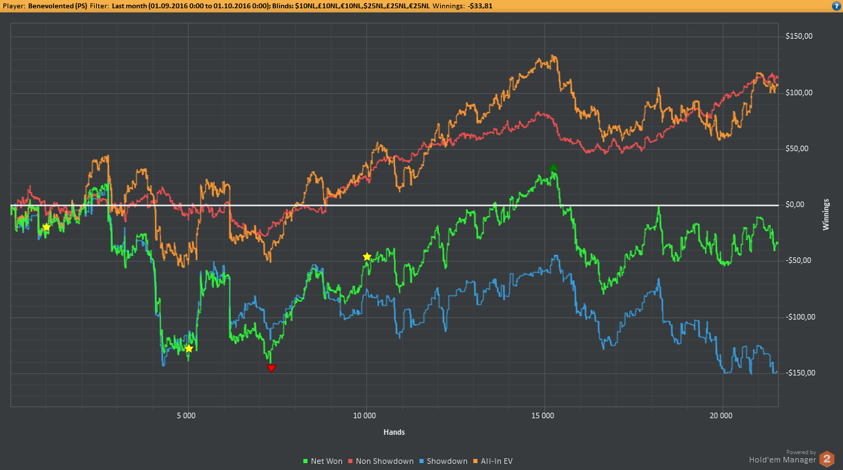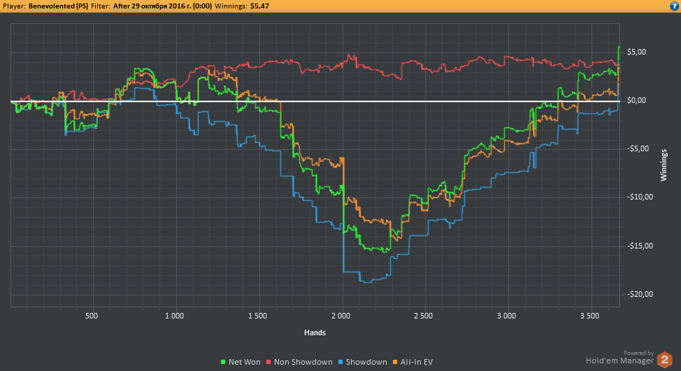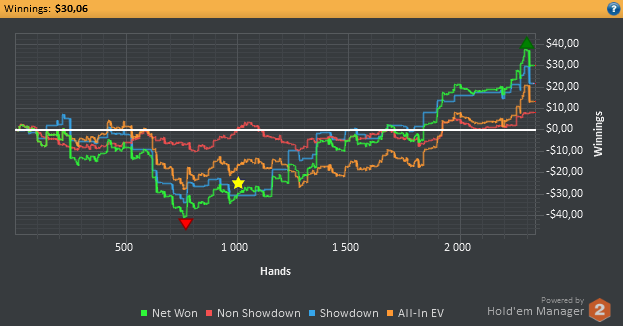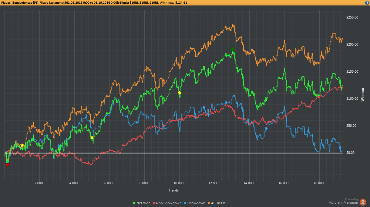 Прошлый месяц опять почти не играл, залипал в конфе только, ну и на нл2 пытался фаниться, но чё-то так себе веселье. Вроде катаешь всерьёз, но не можешь отделаться от чувства, что каждая твоя рука должна выигрывать. Статы там аномальные шопиздец. Ещё вроде выиграл $20 во фриролле и чё-то рейкбеком накапало, уже не учитываю, забываю рефрешить каждый месяц.