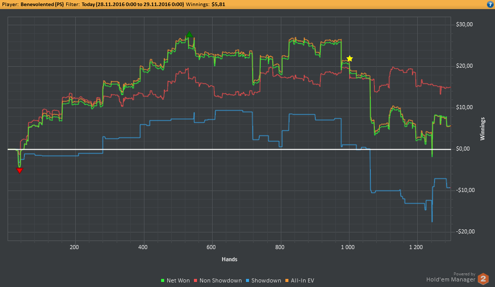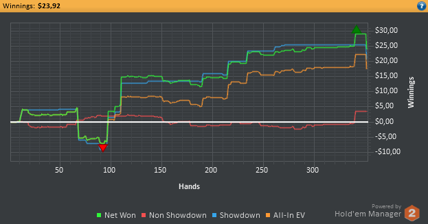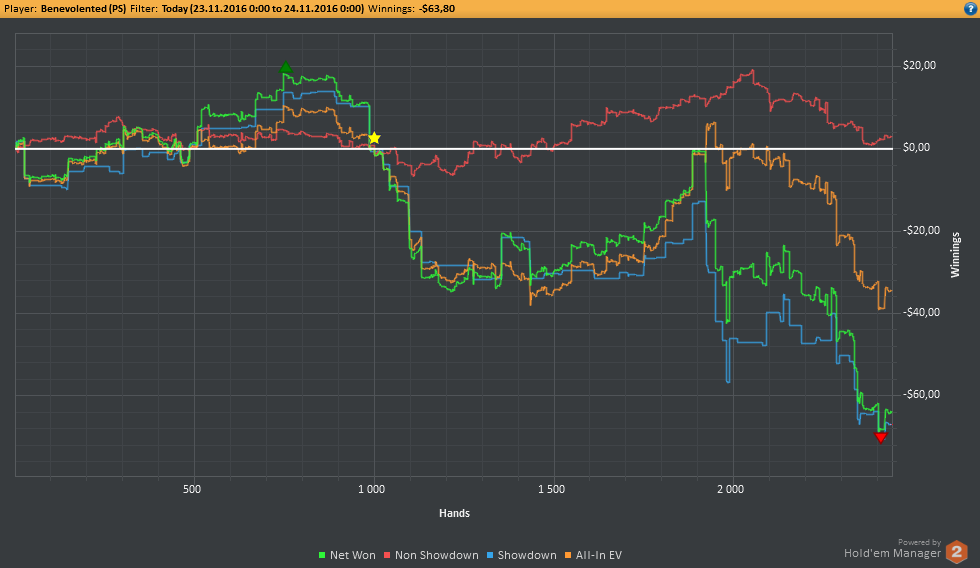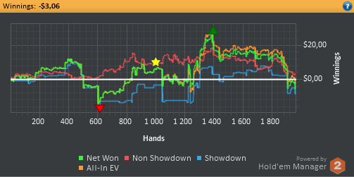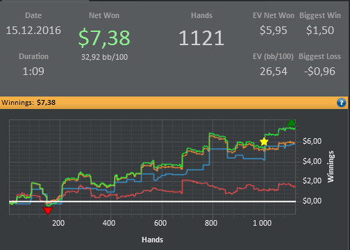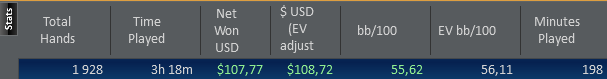 3 часа коту в пизду. Ошибок просто ебучий миллиард, да и проплачивать начали только под конец, до этого вообще в борд попасть первые 800 рук не мог. А потом как попал в два борда, ой пиздец... Надо чаще делать перерывы, играл уже на автопилоте как на нл5 в 24 стола, успевая читать вконтач и фид.