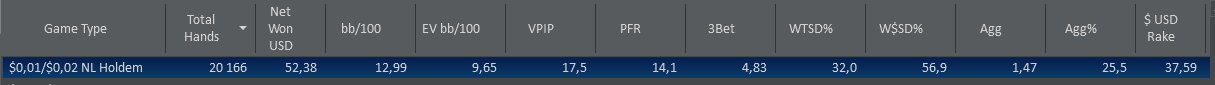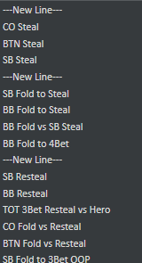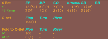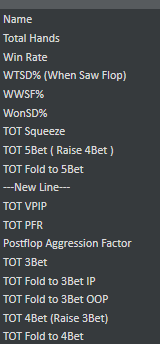 В хад добавил фолды на рестил по позам, убрал общий. Добавил 5бет и фолд на 5бет. Поставил рестил вс хиро от 10 семплов (очень много времени отжирал поп-ап на эту стату, а соответственно и концентрации). 10 вроде на минимум потянет, чтобы уже делать какие-то выводы. Добавил винрейт, ввсф и вссд. Добавил агрессию по улицам.