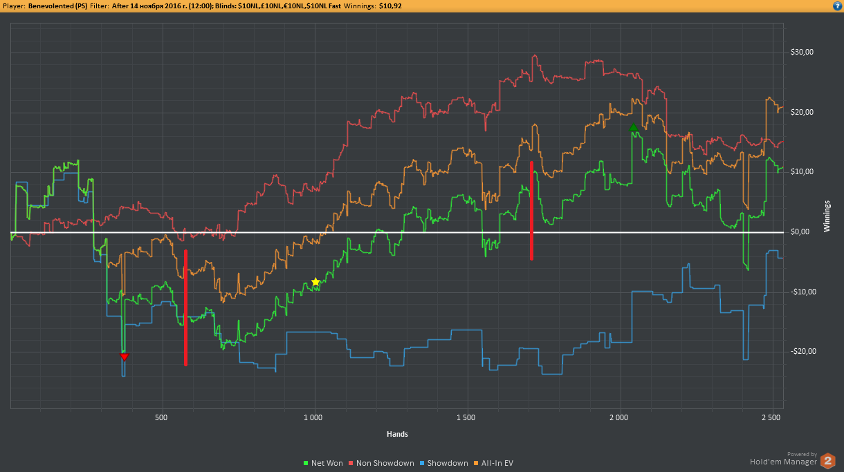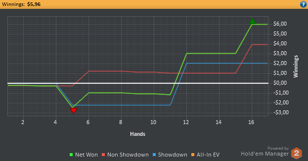 Попал в небольшой стрик, но сделал пару хороший фолдов, которые с былыми психами были невыполнимы, аля, показывай, тупая мразь. Но эти раздачи не о них. На второй сессии в какой-то момент отскочил на полтора стека по красной, хотя играл как обычно.