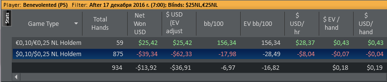 Я решил первое время просматривать все 100% рук с нл25, чтобы найти, где я настолько поменял игру, что заливаю по красной целые стеки.