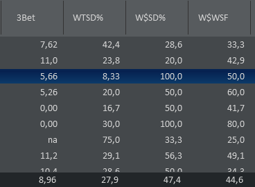 Убрал фолд на донк и фолд на бет ривера. Убрал кбеты в 3бет потах. Поп-ап куда функциональнее хотя бы потому, что я в него смотрю, а про эти статы в хаде я постоянно забывал. Убрал общий фолд на 3бет, сделал разбивку по позициям. Полезная штука.