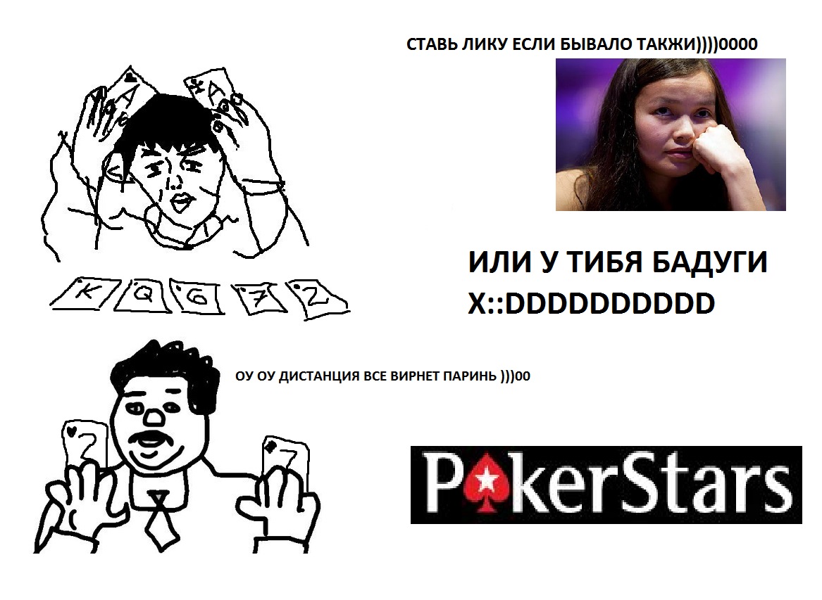 Покер это классно, но всё никак себя в руки не могу взять, чтобы начать нормально играть. Стабильно катаю фриролы, потом забиваю и весь навык теряется. Доходит до ререйзов с рукой туз семь, хер знает как себя контролировать в таких ситуациях.