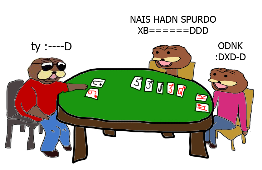 Играю меньше месяца, сегодня узнал из соседнего треда про фрироллы, посмотрел что есть, а там нужен билетик. Короче, минут за 5 осилил правила 2-7 трипл и сингл дро, пару турниров слил руке на 50-й, последний только что затащил на билетик заебался и пошел в олл-ин почти что с натсом против русского Ваньки и отдал ему полляма фишек, так как у него и был тот самый ореховый натс. Уже полчаса прошло, а они там все катают и катают. Пикрелейтед - переломный момент.