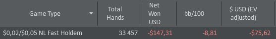 >>5327 Там же можно любого игрока указать. Да и причём тут это, если нужно собирать данные на других игроков. Насколько я понял, HM импортирует историю рук из двух источников: AppData\Local\PokerStars\HandHistory - здесь сохраняются только раздачи с моим участием, хотя в самом клиенте PS можно посмотреть абсолютно все раздачи из открытых столов по Ctrl+I. Видимо они сохраняются только в памяти. AppData\Roaming\HEM Data\Hands - здесь сохраняет историю всех раздач сам HM, но сохраняет почему-то очень криво и далеко не все. Именно эта история отображается в HM. Я так и не понял, ошибка ли это или нельзя собирать статистику когда ты сам не в игре.
