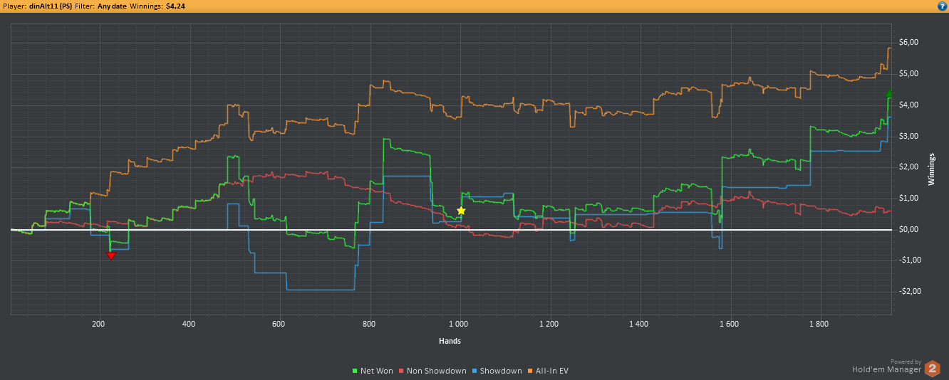 Спиздить 10 потов по $1 или 1 по $10 — разницы нет. Но маленькие поты случаются гораздо чаще, и именно в них надо рулить, чтобы выигрывать на дистанции. На вскрытии любой дурак выиграет. Просто мне в этой сессии не поперло, хуита. Зато на дистанции я стабильно буду держать в плюс красную, или хотя бы в ноль. Рейкоботы 18/16 соснули хуйца со своими графиками-елочками.