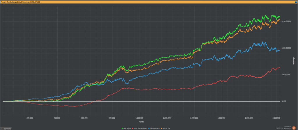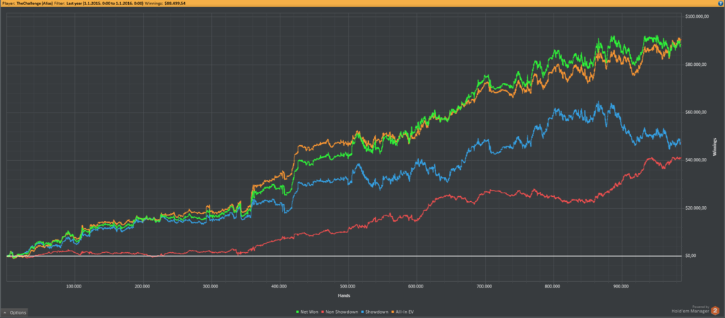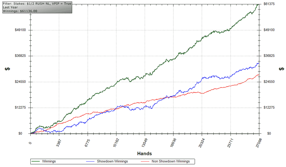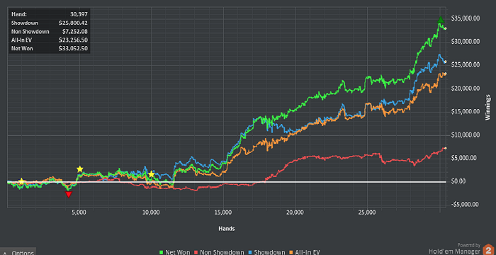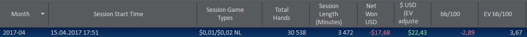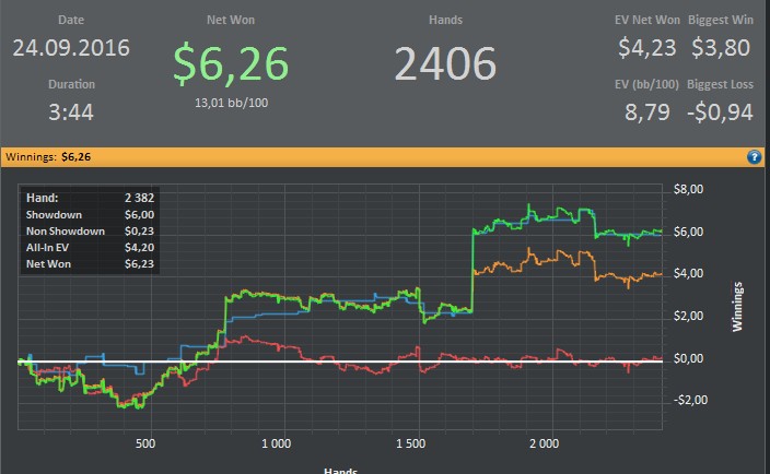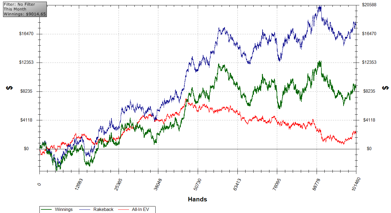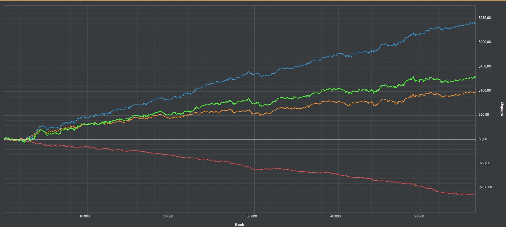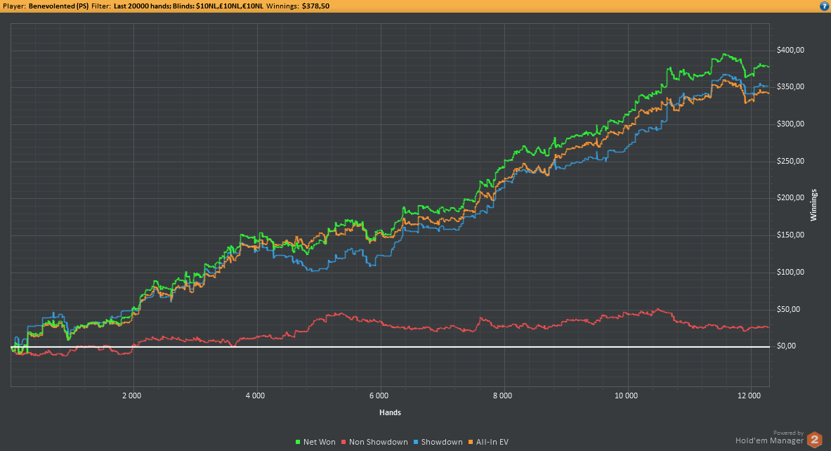 В целом мой покерный пусть можно разделить на несколько этапов. Этап №1 Октябрь 2016 деп 100$ игра на 15-ти столах без стат. Слив до 60-ти и тильт в котором пошёл на нл50-100 и переехал там парочку типов, что позволило зафиксировать кассу на 200$ Ноябрь 2016 скачан хм и поставлена цель зарабатывать покером и в диспе держать себя в руках и не ломиться на лимиты выше. Этап №2 Февраль 2016 вторая серьёзная диспа и моральный слом. Вывод бра в айпокер, игра нл5 в ноль месяц за 50$рб Возвращение на старзы с улучшенным скиллом и затащенным за 0.55 туриком, который отсрочил работу над игрой. Этап №3 Июль 2016 третья серьёзная диспа, игра в ноль 70к рук, возвращение передачи за эти полгода. С этого момента я начал разбирать базу и игру. Сентябрь-Октябрь 2016 рост винрейта на 2 единицы, но продолжение возвращения передачи. Первые шаги в бекинге, вновь разбор базы и вновь увеличение винрейта ещё на 3 единицы. Этап № 4 Ноябрь 2016-Февраль 2017 Игра с вр 10 и осознанием того, что это поле я бью стабильно. Бекинг плюсовый. Конец февраля 2017 Понимаю, что серьёзные деньги в бекинге поднимаются с увеличением бра поэтому штурм нл10 на хапок со слабой базой нл2 дна, как итог игра в ноль. Первый тильт в бекинге, серьёзный минус, боль.