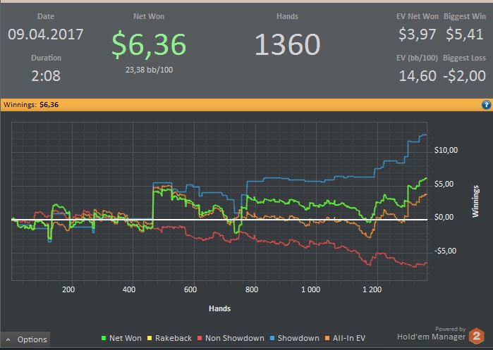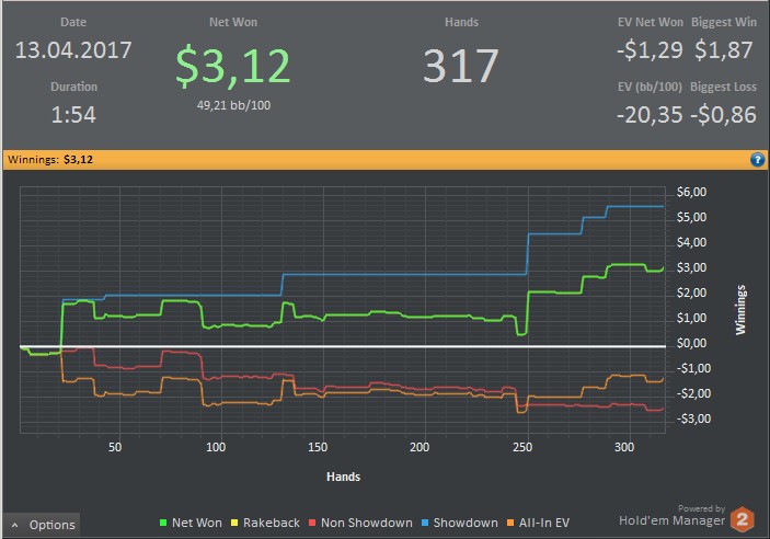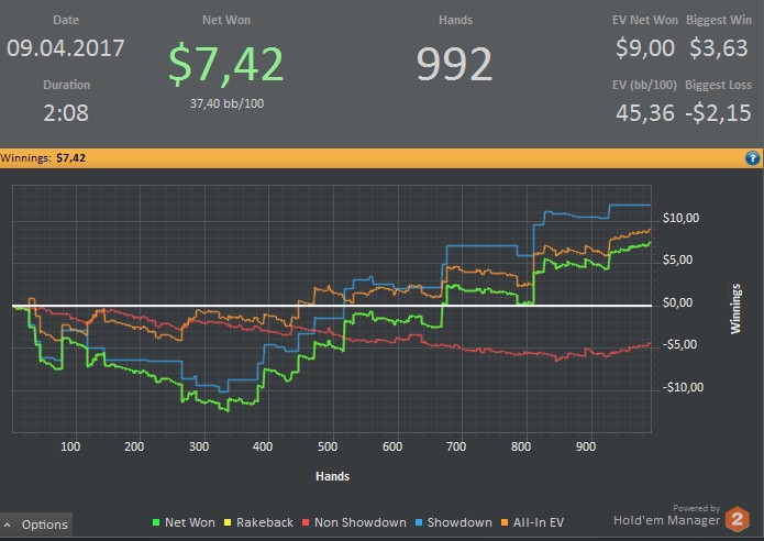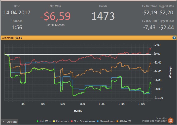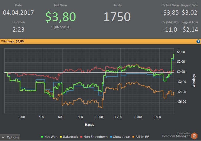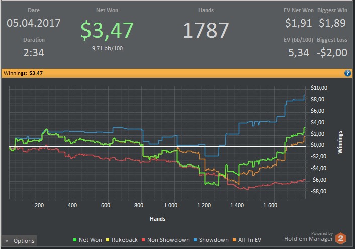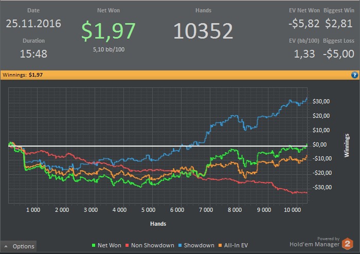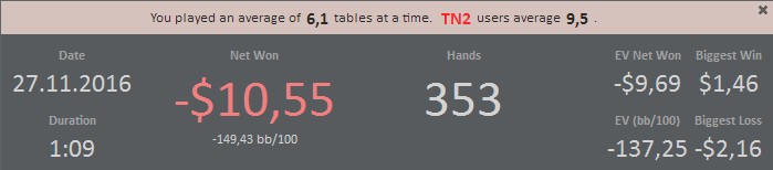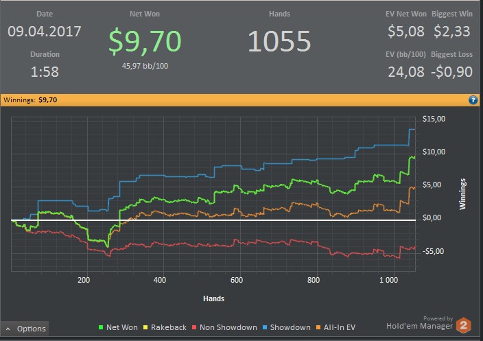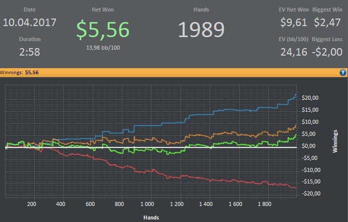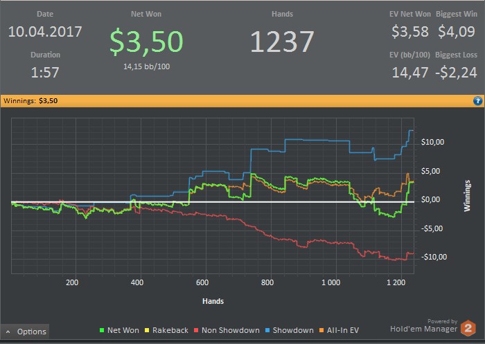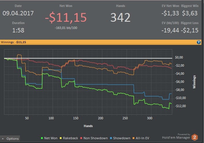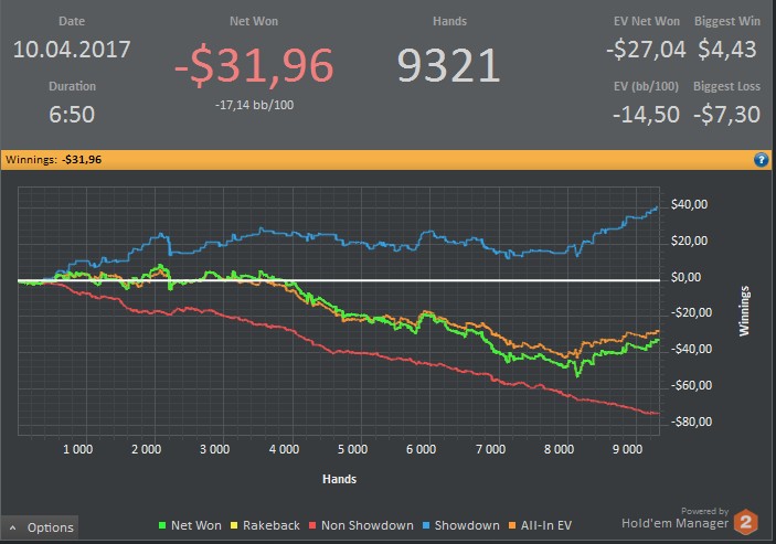 В-общем днём накатываю по 3-4к рук на нл2(так для страховки) А вечером после 9-ти начал катать десятку по-немногу. Страшного ничё нет, но уже нахуесосил парочку "регов"