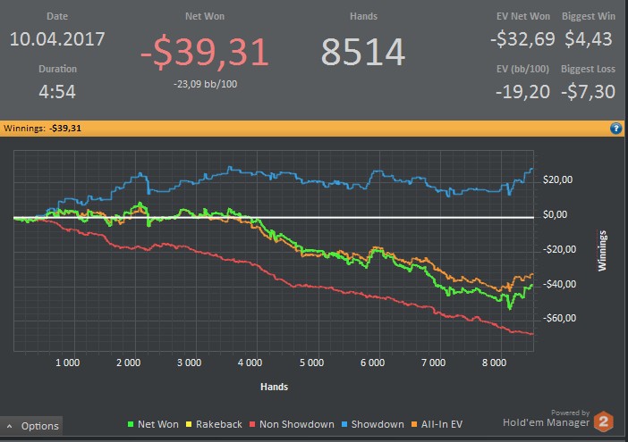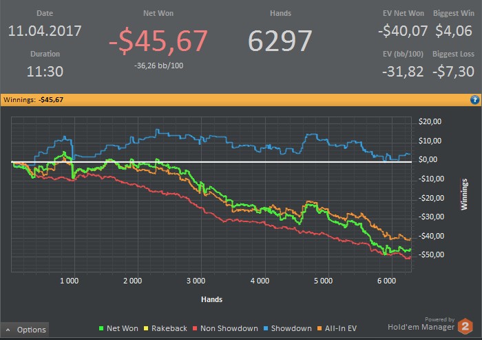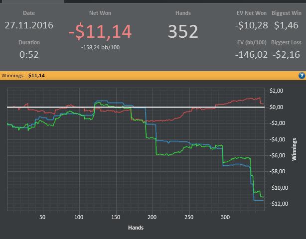 так меня последний раз диспа ебала 1 декабря 2016 года обычно я любую диспу отыгрываю в ноль или максимум -1 или 2 би но бывает что вообще нихуя не выиграть, как вчера и сегодня поэтому и просадка оче жирная и нервозная, когда тебя по щекам хлестают без остановки та декабрьская ебала продлилась 20к рук стрика и 30к рук игры в слабый плюс так что апрель у меня будет весёлый ёб вашу мать