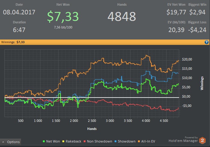 Как вы знаете март месяц перечеркнул мой плюс в бекинге сразу за полгода поэтому время потеряно, но я сделаю работу над ошибками и больше не наступлю на эти грабли. По игре планирую уже с нл5 начать заниматься теорией в полной мере и уделять покеру достаточно времени потому что чем выше играемые лимиты, тем выше заработок в бекинге. Так же в планах создать что-то вроде школы обучения+бекинг, но реализация этой идеи упирается в рост по лимитам поэтому запланирована на 2018-2019 год.