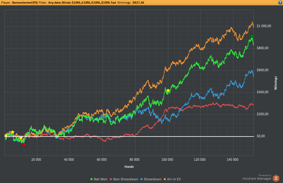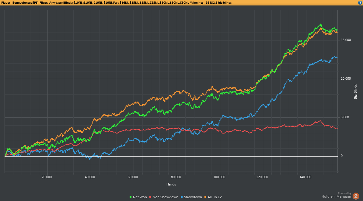 Сделал кэшаут, пошёл катать нл10 сх и о чудо, плюсовая сессия! К слову, нл10 фр 11к рук в этом месяце иду в -5бб/100 и это после того, как 140к рук откатал в 11бб. Пути ГСЧ неисповедимы. О, Госпожа Дисперсия! Твой хуй солён и толст...
