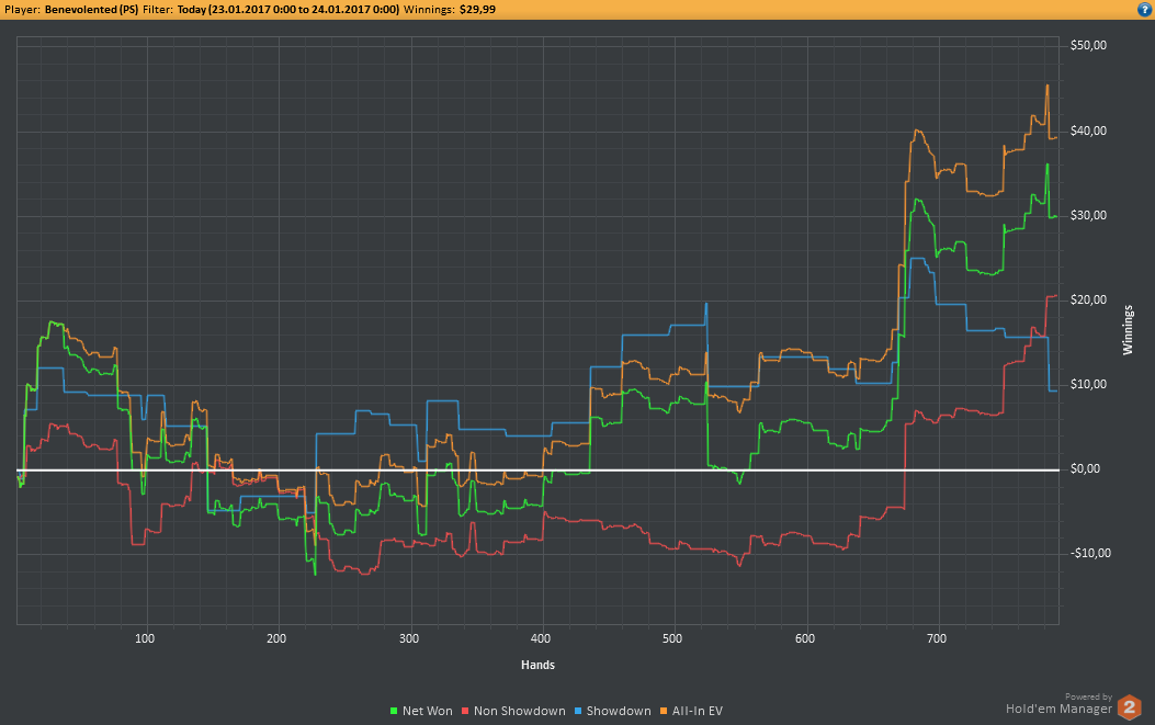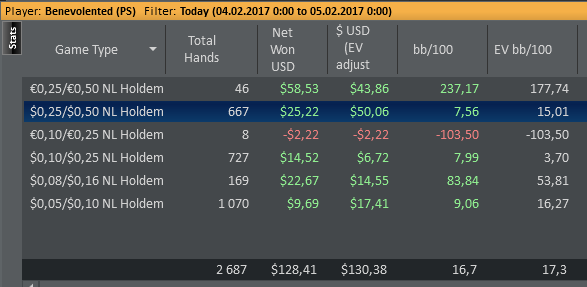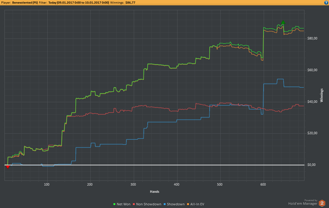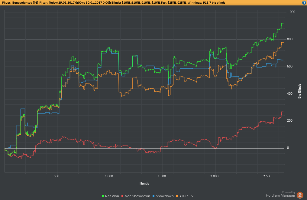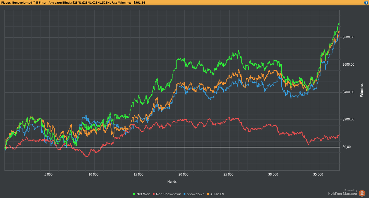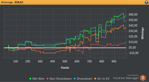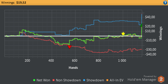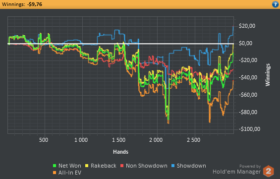 Даже не знаю, по-моему, пока всё плохо, но не так чтобы усираться. Но 8-9бб/100 на нл25 внушают надежду, что и здесь смогу что-то плюсовать. С другой стороны, у меня сорт оф агробрм для этого лимита, я не привык играть с 30-40БИ на новых лимитах, деньги снова давят, хотя казалось бы, уже забыл, что это за чувство.