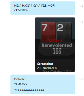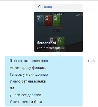 Ну да похуй, посмеялся только. А потом в какой-то момент заметил, что в который раз получаю 4.2х 3бет от тайтового оппа. Ну и короче... у него 3 бет в меня 27 на 50 семплов. Мне сорвало башню просто, начал его 4бетить, коллить 3 банки на полном говне етц. В итоге полтора-два стека в тильте ему отгрузил. Ну просто охуеть, как так можно вообще над человеком издеваться? У меня же есть чувства. Раскачал он меня просто ебать как, что я поплыл абсолютно везде, взгляд затуманился, даже карт не замечал. Я хотел бы уметь как он, только хз как это потом примеять. Я чуть не вколлил 5бет с Q6s. По идее он должен расширять в меня 4бет чуть ли не до эниту, ведь он явно заметил, что я заметил. Ну и вот коллю я его T9s какие-нибудь. И со мной так же будет. Такой вот вопрос - как пользоваться динамикой на задроченного тобой оппа?