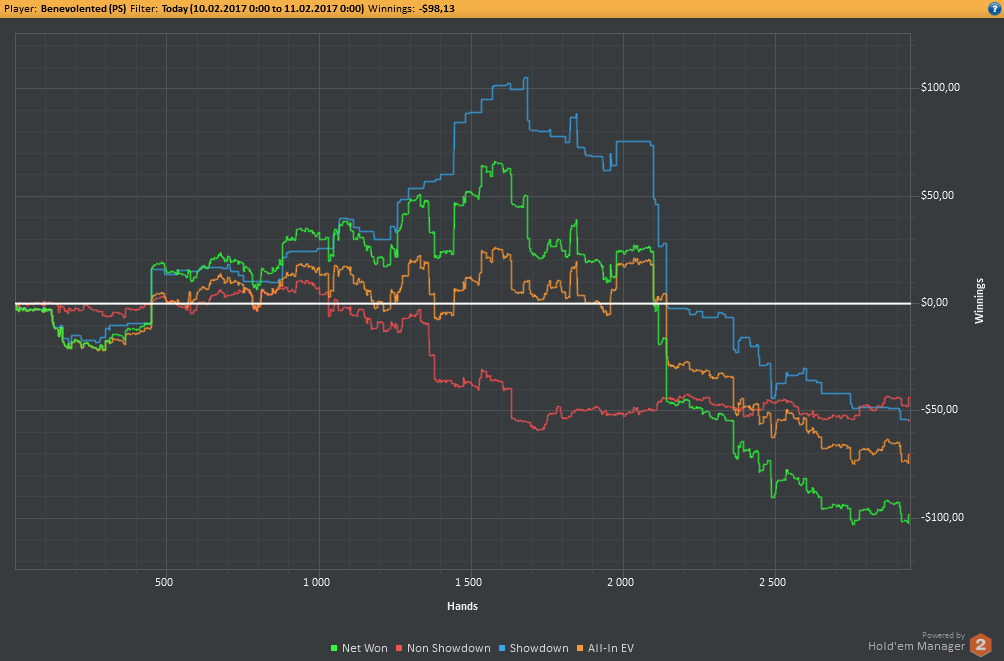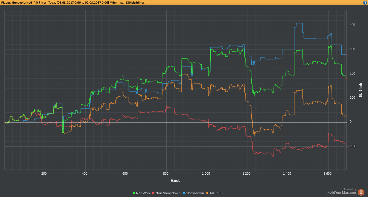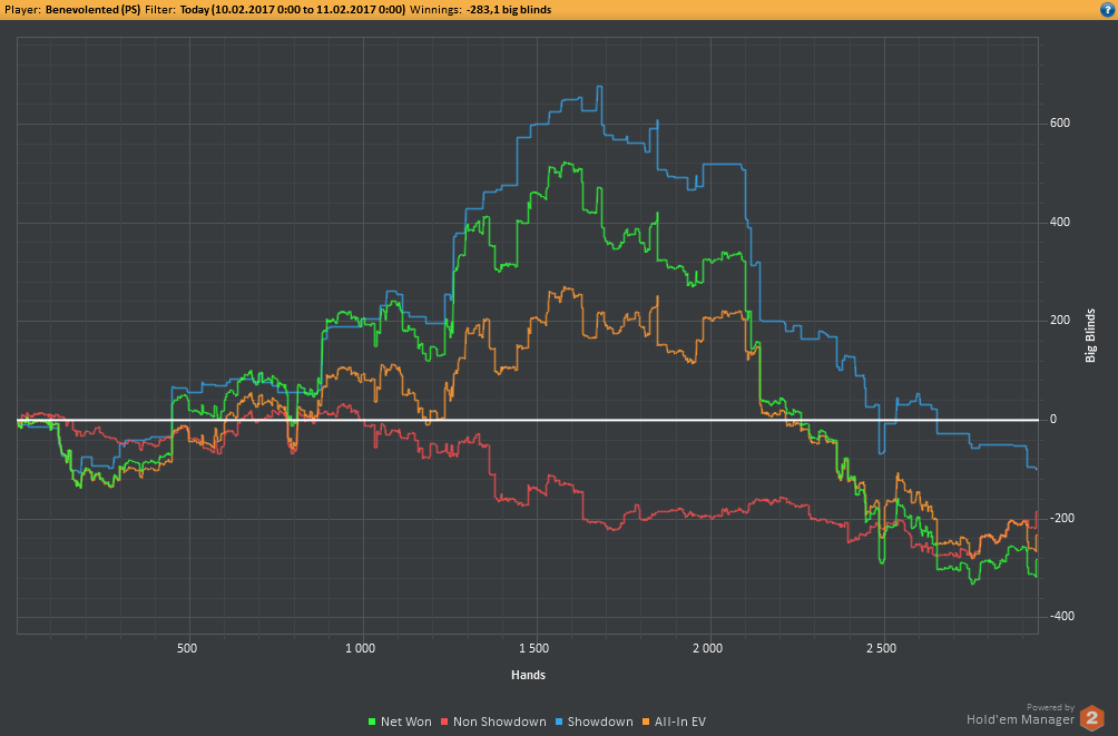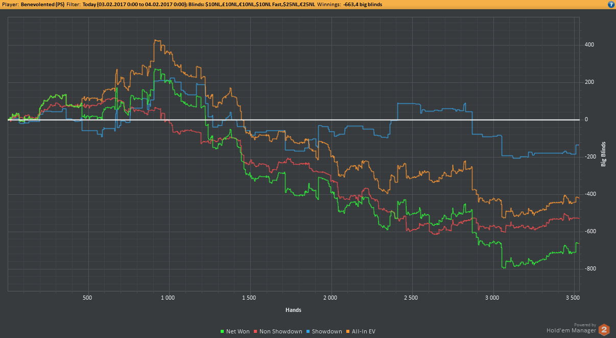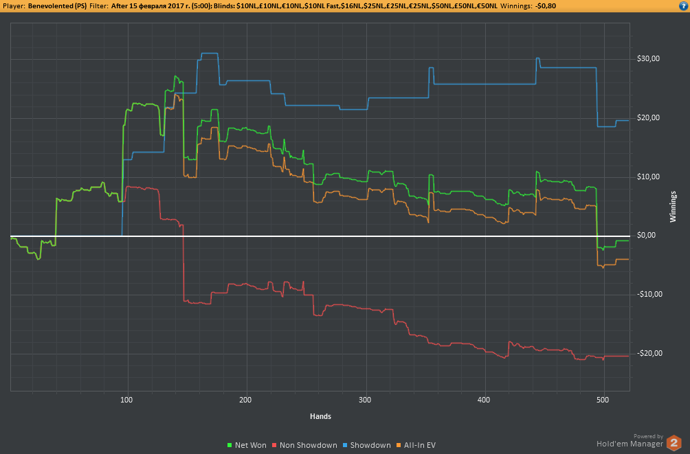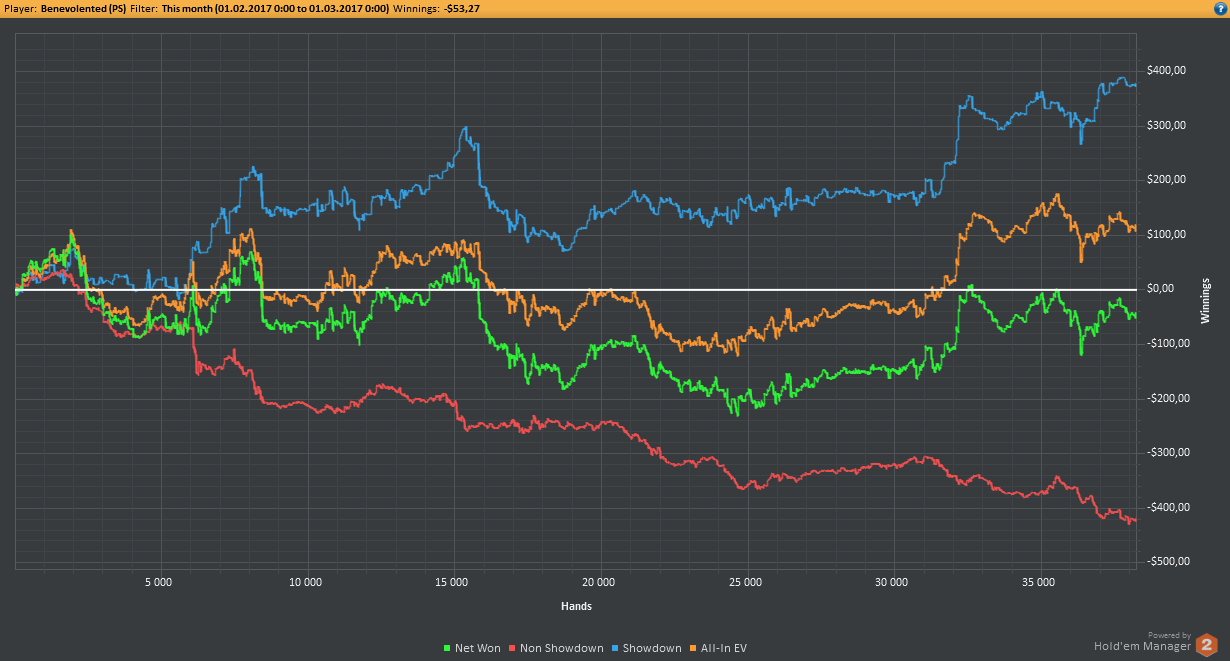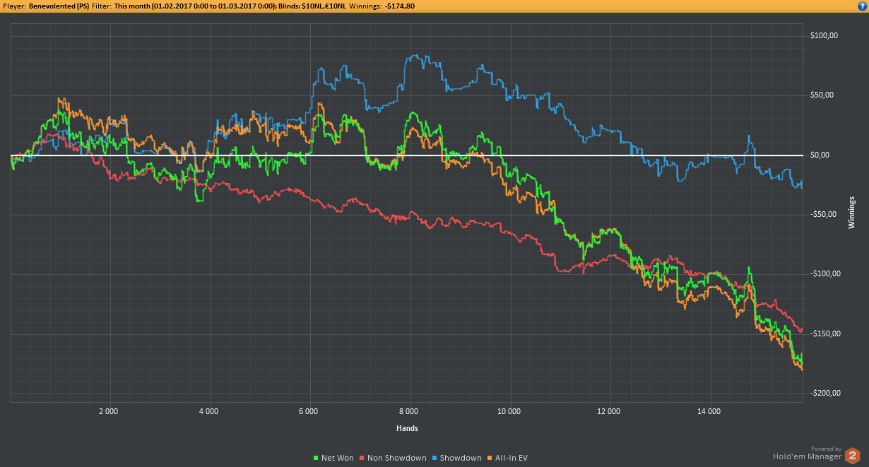 Аномальный февраль, такой аномальный. Чтобы не быть голословным, кину график нл10 отдельно. Несомненно, мой худший покер за всё время. На днях ещё надо будет купить ТО, триал кончился. Уже начинаю жалеть, что не купил тильт брейкер, в этом месяце он бы пригождался мне через день. Если март начну нормально, то точно куплю. 2БИ рабочего лимита не жалко, чтобы перестать заливать эти бай-ины десятками.