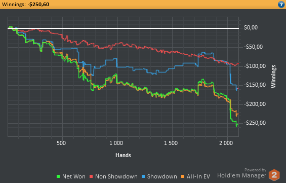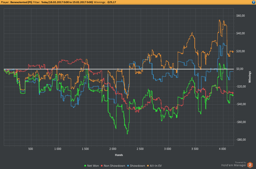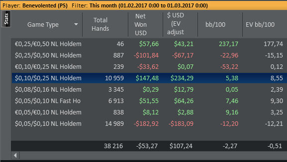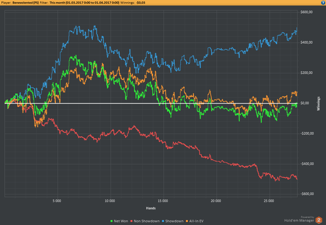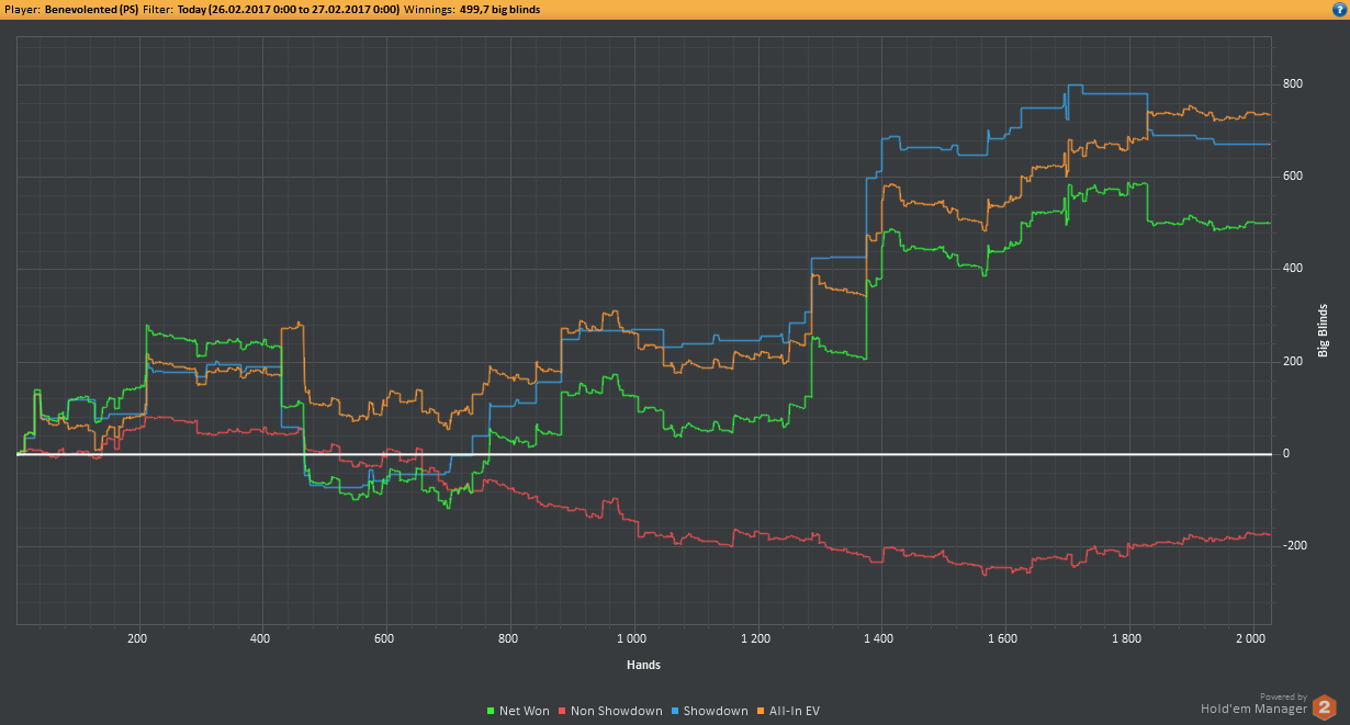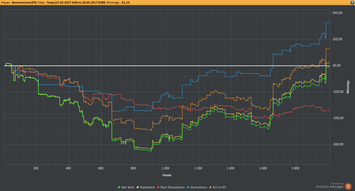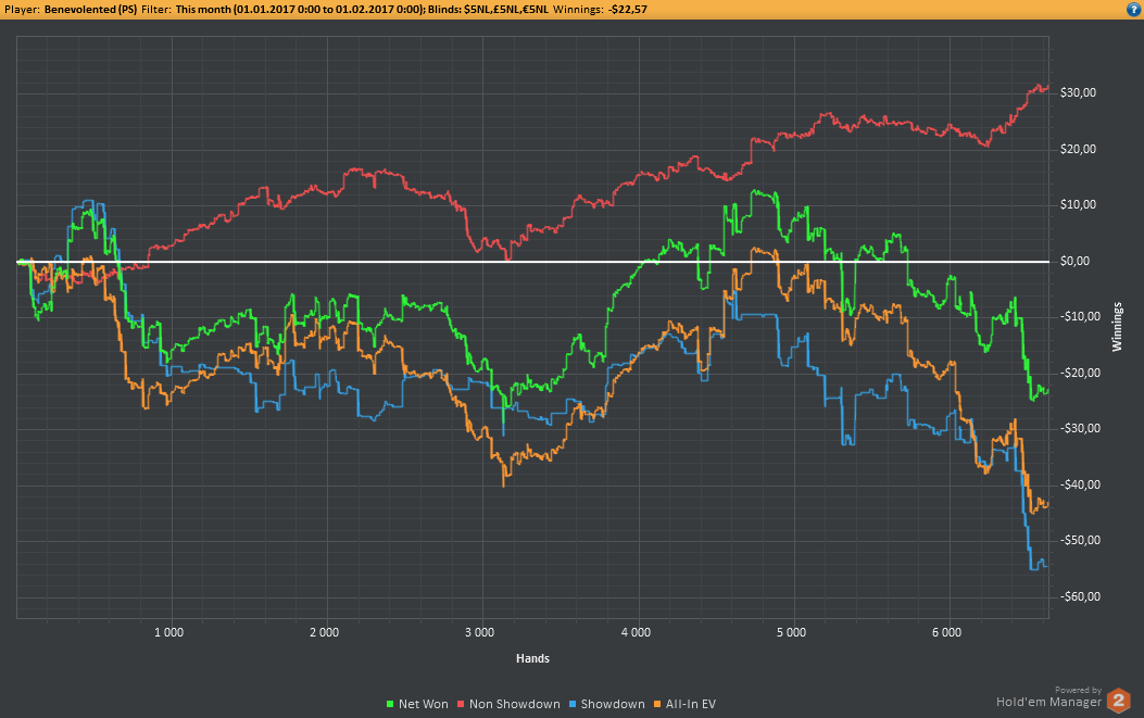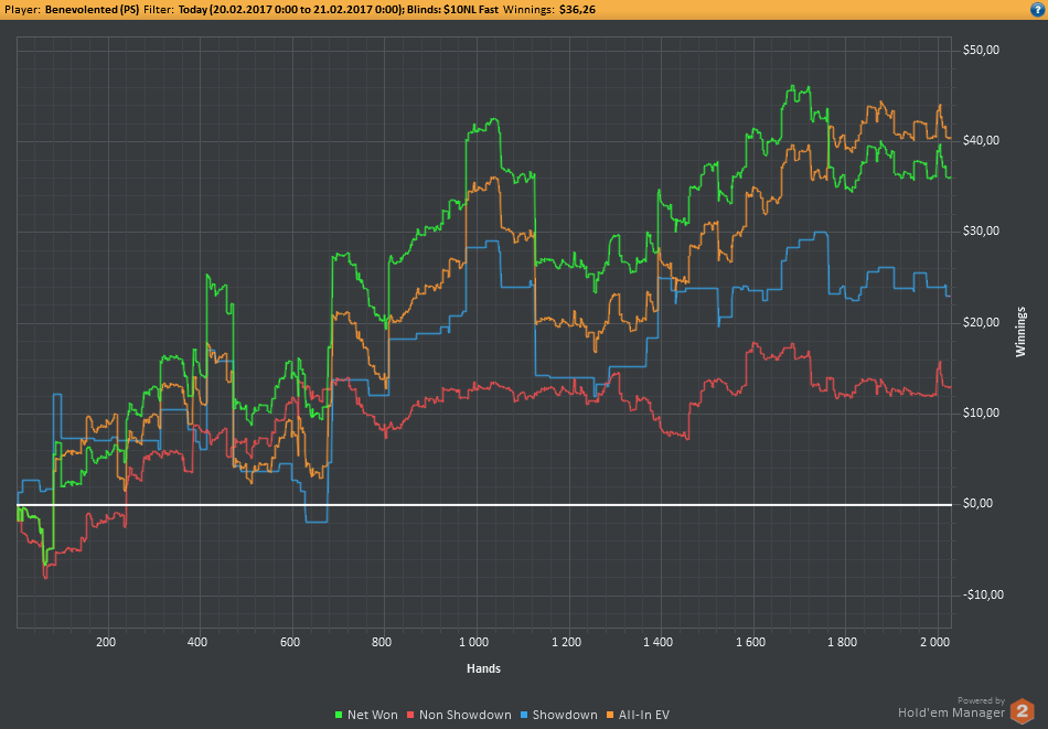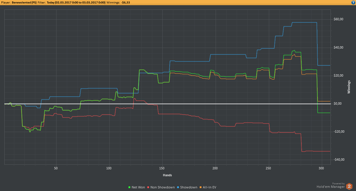 Аномальный февраль, такой аномальный. Чтобы не быть голословным, кину график нл10 отдельно. Несомненно, мой худший покер за всё время. На днях ещё надо будет купить ТО, триал кончился. Уже начинаю жалеть, что не купил тильт брейкер, в этом месяце он бы пригождался мне через день. Если март начну нормально, то точно куплю. 2БИ рабочего лимита не жалко, чтобы перестать заливать эти бай-ины десятками.