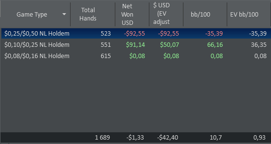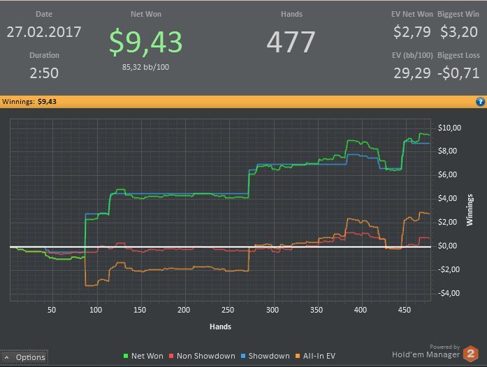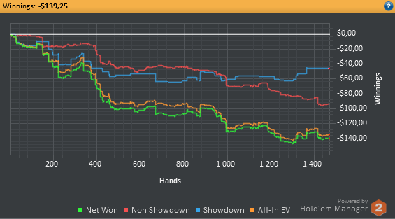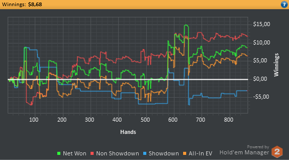 Сегодня опять почти не играл, пришлось по делам уезжать. 700 рук на нл2, 300 на нл10 зум+обычные столы. Катал бы ещё, но надо график хоть какой-то соблюдать.