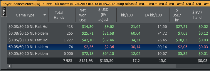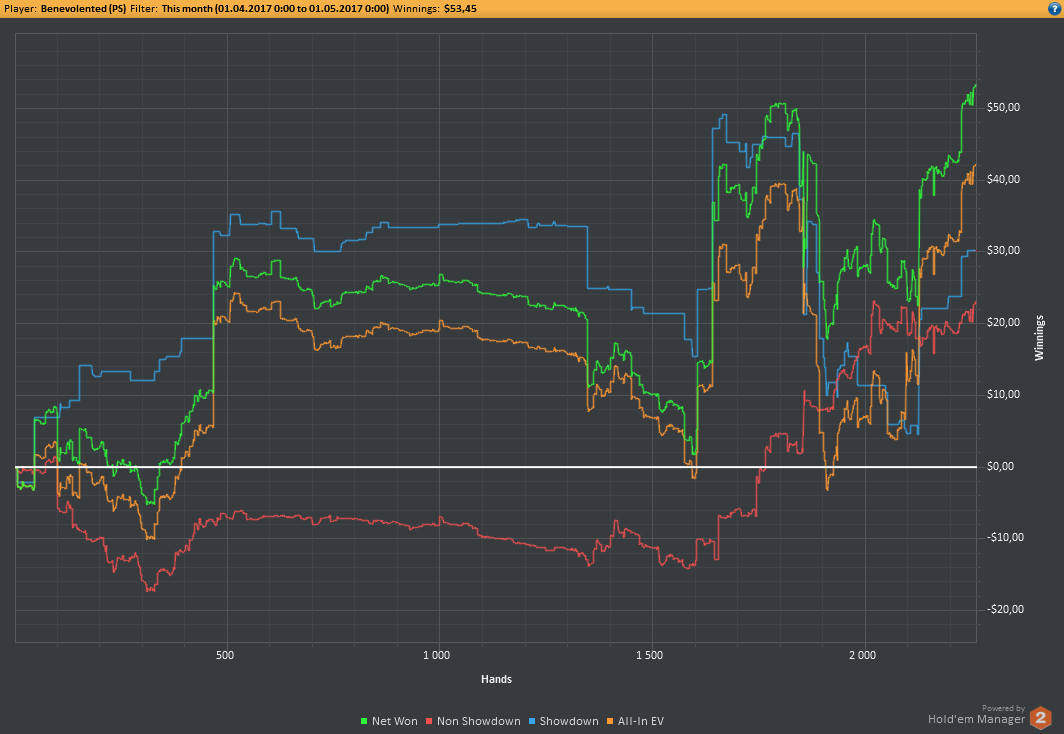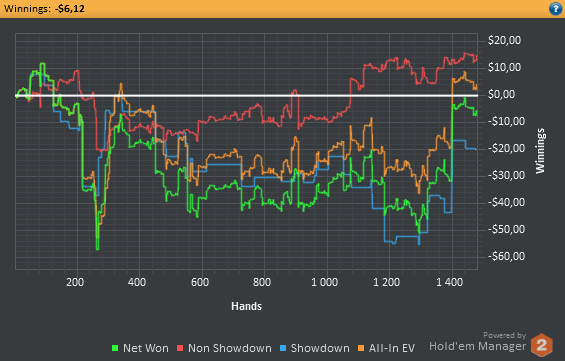 Отыграл 19 дней, 8 из них меньше тысячи рук, лол. долго не мог понять, что произошло с моей игрой помимо очевидного затянувшегося даунстрика. Лик нашёл только в эту среду. Вернее даже не лик, а то, что изменялось со времён моей результативной игры. Я полностью перестроил свою игру, вообще полностью весь постфлоп. Либо у меня не хватает технических знаний, чтобы играть так, как я это делаю сейчас, либо я что-то делаю не так, что в принципе одно и то же, ежжи. Играл так мало, потому что интернет рвётся каждые 30 секунд буквально, выцепить окно с нормальным коннектом очень сложно. Послезавтра перееду в другое место, там всё нормально с этим. Следующие 2 дня не играю.
