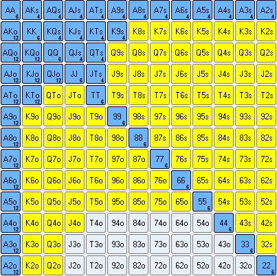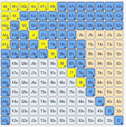 Но очевидно, что когда ты пушишь А6о тебя примут по всем или почти всем тузам лучше против которых у тебя 3 аута. И никогда не примут по К6с, которые ты мог бы доминировать.