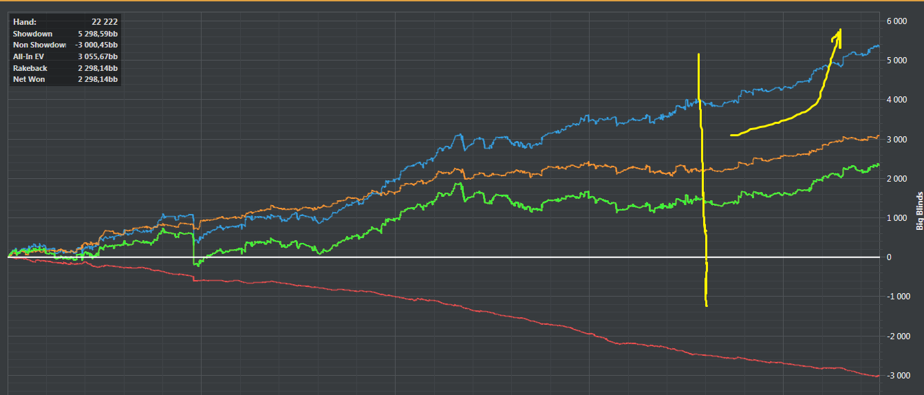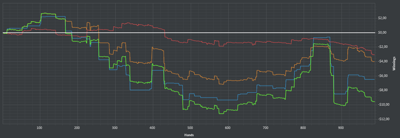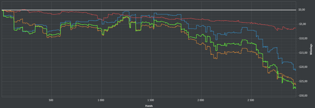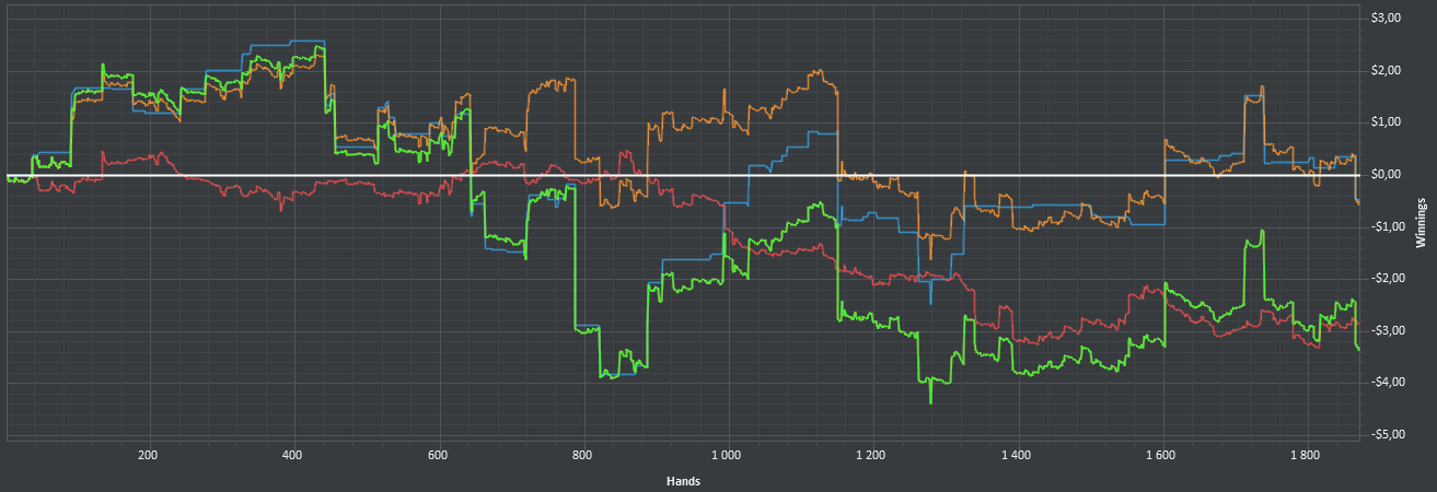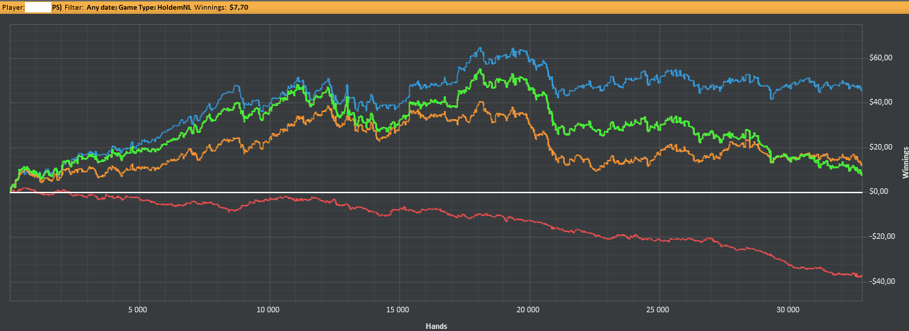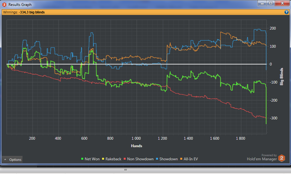 На нл2 не может происходить таких пиздецов, чтобы играть нл2 в ноль больше тысячи рук. Худшие игроки планеты в одном месте, а ты вместо комплексного обучения и признания ошибок списываешь всё на диспут, которая там реальна невозможна из-за потенциально огромных винрейтов.