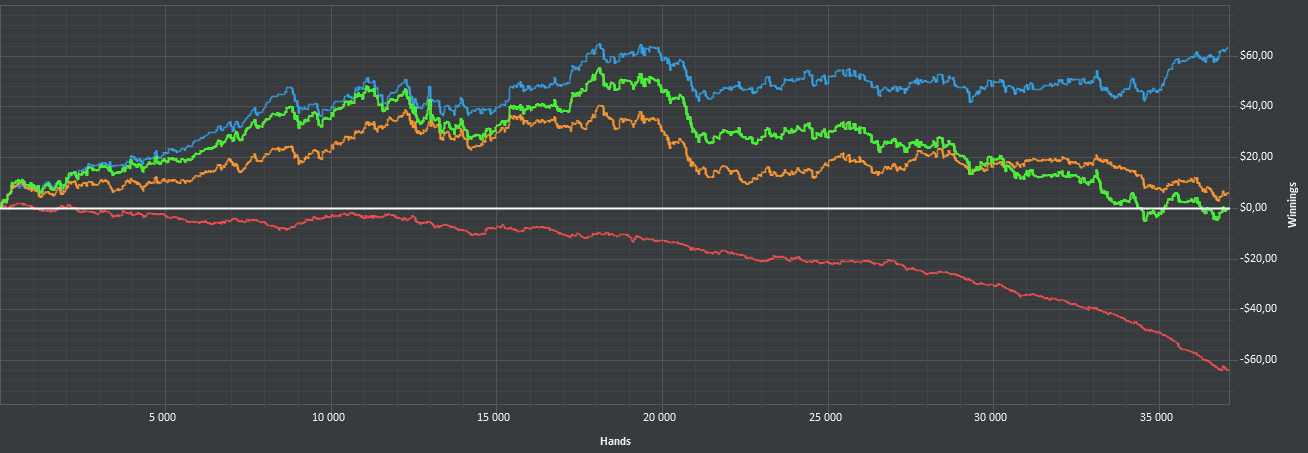 >>37297 >>37298 Это начиная с >>36870 поста. Старую базу которая с начала треда потер, но график оттуда тоже выкладывал, там чисто в 0 за 30к рук вроде.