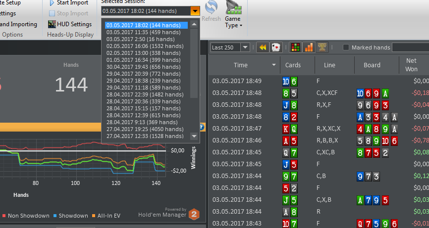 Остальные раздачи потом, сейчас вкидываю статы за все время. Чет сьютед бродвеи и средние сьютед гапперы в минус. Некоторые карманки тоже. Зум омаха зло, закатал 20$ и даже не помню, как и когда умудрился, аштрисет. Чисто холдем, как ни странно, получился в плюс. По позициям Катофф минусовой шта?!, бб - черная дыра, засасывающая мои деньги. Ну, хотя бы лучше, чем если б выбрасывал каждый раз, тогда бы -124$ только я не учел, что стилят не каждый раз и часто бывает противостояние бб vs сб, где у первого позиционный перевес.