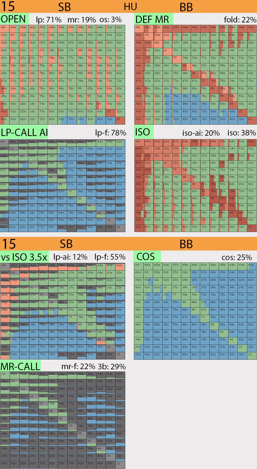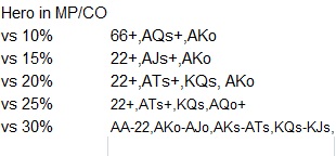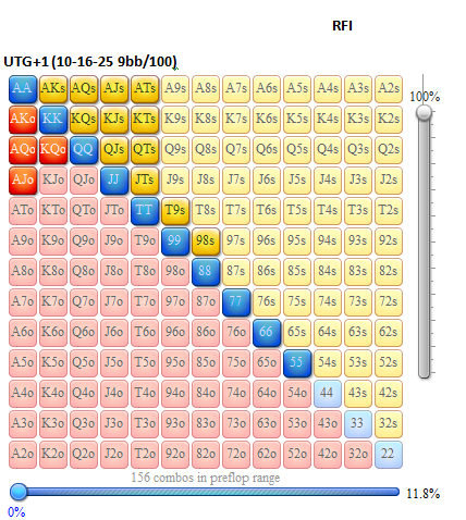 Вот мои чарты. Утг+1 и +2 одинаковы. Дольные руки открываю, если на ББ сидит фиш или если впереди сидит жирный фиш с огромным впипом вне зависимости от его постфлопа.