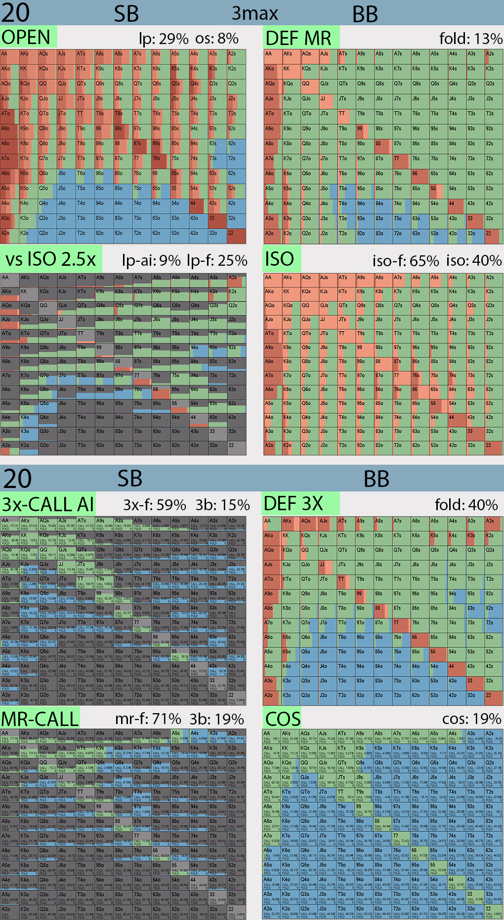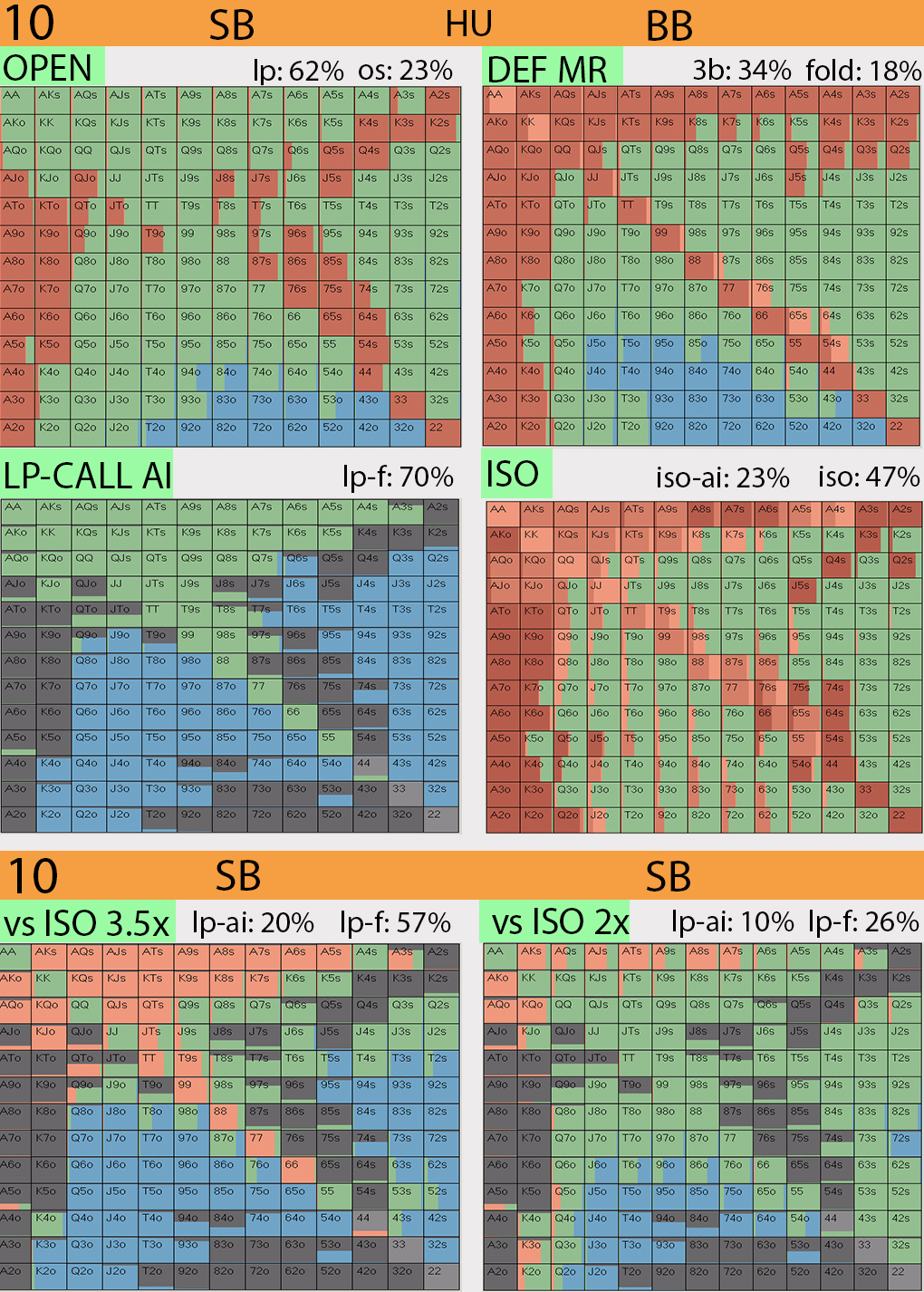 >>36085 На СО чуть-чуть по-другому в игре играю, эти матрицы составлял скорее по выборке своей для наглядности, поэтому там есть некоторые аномалии типа отсутствия J8s, но с 96s. На БУ играю тоже шире, но как-то странно там всё получается. Все винрейты только для этих рук анопенд приведены, позы естественно играются с другими винрейтами.