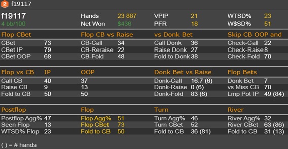 Опять ебу мозги, работа, все дела, было не до карт. Но посмотрел видосы с ютуба по ХМ2, возникли последние вопросы, после которых буду играть, думаю вас не затруднит на них ответить, да и на большинство из них хватит ответа да\нет. На пике мой хад, сверху там еще имя и количество рук не влезло, еще нужно будет минимальные семплы глянуть. 1. Касаемо клиента, нужно, чтобы был на английском. Хватит того, чтобы установить на русском, все настроить и поменять потом на инглиш? Или именно устанавливать надо сразу на английском? 2. Вы делали привязку к телефону, чтобы там смс с кодом приходило при каждом входе или похуй? 3. Есть 1,36$, но еще есть 2 бакса на турнирных деньгах. Как бы их перекинуть? Просто зарегаться в турнире, а потом отменить регистрацию и станут уже не турнирные, а обычные? 4. С любимым местом в ХМ2 вышла непонятка, в настройках нужно ползти в «seating prefeccence» -а у меня такой графы нет, блядь. 5. Нужно ли делать статы vs hero – ну именно против меня как он играет или ну его нахуй? 6. Не могу найти настройку прозрачности хада, размера цифр, аббревиатур перед цифрами. Может его обновить как-то? Если обновлю, мой кряк не слетит, не заставит покупать прогу? 7. Можно ли запустить ХМ2 и просто зайти на стол, не играя, чтобы статы пособирались перед игрой? 8. Дисплеед статс – там где-то поставить галочку, чтобы запускался хад при запуске ХМ2 – опять найти не могу. 9. Про автоимпорт рук что-то говорят, нужно его настраивать или нет? На этом, вроде бы и все. Больше вопросов нет, если по ходу дела еще не появятся. Уж извините за назойливость и тупость.