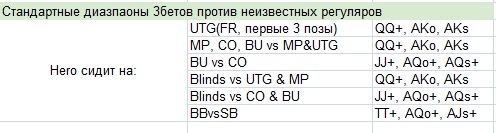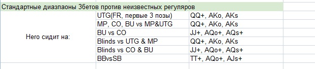 Да, кстати там пишут, что для добавления 3бета в блеф нужен 65%+ фолд на 3бет. У меня вот статы нулевые, т.к. еще не играю, значит мне блеф 3бет вообще не делать, пока семплы не наберутся? В принципе там вроде не хуй надо, около 20.