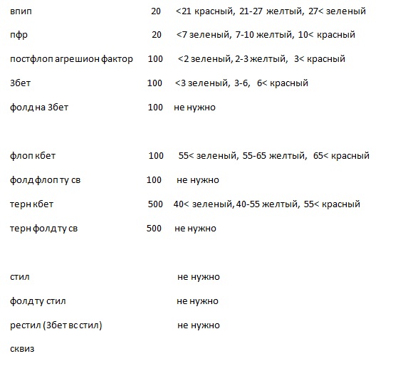 Опять вкатываюсь. Прочитал вышеуказанные форумы, все равно осталось несколько непоняток. Вы уж подскажите, реально совсем чуть-чуть осталось до начала игры. То, что написано снизу, в интернете или вообще нет или мнение пиздец разнится, поэтому сюда и пишу. Пикрилейтед мой хад, с наброском по минимальным семплам и разукрашиванию показателей. Если где-то я написал «не нужно», значит сориентруюсь от цифры, пока разукрашивать не буду. Клиент и хому настроил, осталось совсем чуть-чуть. 1. Нужно ли делать статы vs hero – ну именно против меня как он играет или ну его нахуй? 2. Можно ли запустить ХМ2 и просто зайти на стол, не играя, чтобы статы пособирались перед игрой? 3. Про автоимпорт рук что-то говорят, нужно его настраивать или нет? 4. Нужно ли делать, чтобы хад менялся при изменении количества игроков, ну в хедзапе явно человек играет не так, как за полным столом. 5. Какие семплы должны быть у последних 4х стат в моем списке? Все перерыл и хуй чего нашел. 6. Как разукрашивать сквиз, от каких показателей отталкиваться?