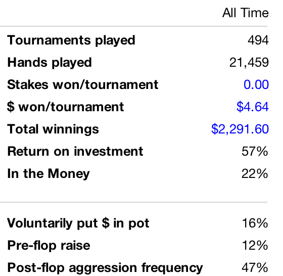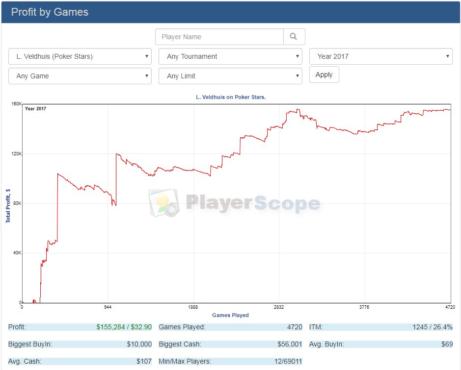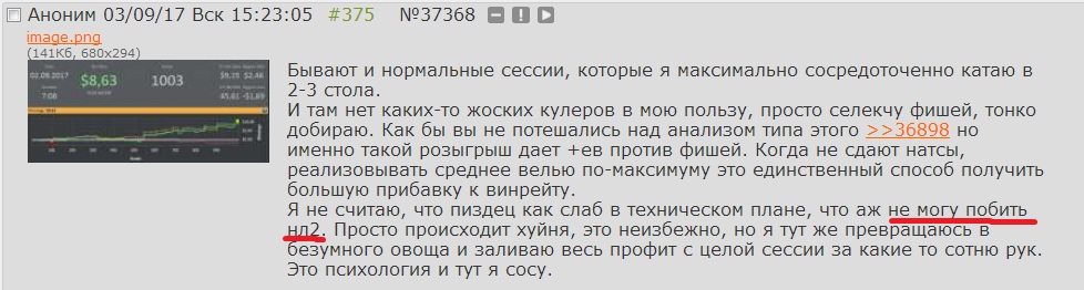 >>42237 >Ты показываешь такие резалты? Нет, конечно. Я ленивый хикка аутист, который в 2018 играет MSS на FR столах на NL100. Мне хватает моих 25$/час. Я играю то не каждый день и не всегда больше 2х часов, а ты говоришь про задрачивание теории... Но цифры я тебе дал реальные, никаких маняфантазий. Если мне взять 2-3 занятия у хорошего тренера, потратить 2-3 месяца на хороший разбор игры по BSS, то у меня эти результаты будут, даже лучше, я думаю. Только нахуя мне это? Кому надо, тот задрачивает. >Покер сильно истощает. Нельзя им заниматься помногу и регулярно без деформации личности. Пруф.