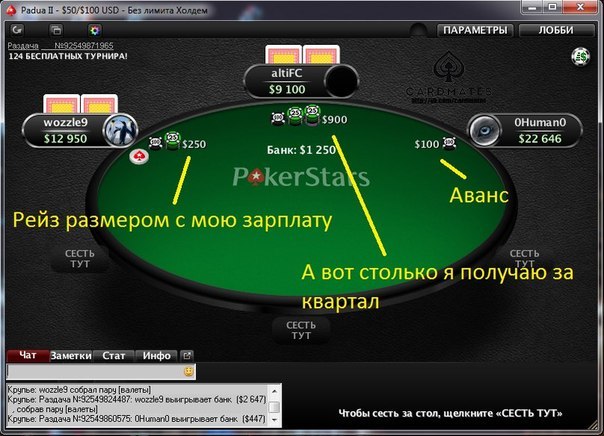 >>41349 РЕШИЛ ПЕРЕКАТИТЬСЯ В ОФФЛАЙН @ ЗАХОДИШЬ В МЕСТНЫЙ ПОДВАЛ, КОТОРЫЙ ГОРДО ЗОВЕТСЯ ПОКЕРКЛУБОМ @ САДИШЬСЯ ЗА СТОЛ @ ТВОИ СОПЕРНИКИ: МЕСТНАЯ ОПГ, ДВА ДЕРЗКИХ АШОТА И ПЬЯНЮЩИЙ ПУЗАТЫЙ МУЖЧИНА, КОТОРЫЙ ПРОСТО СПИТ ЗА СТОЛОМ @ ДИЛЕР СДАЕТ КАРТЫ, ЕХИДНО ПОДМИГИВАЯ АШОТАМ И СГОНЯЯ ПОПУТНО ТАРАКАНОВ СО СТОЛА @ ФОЛДИШЬ 5 РУК ПОДРЯД @ ЭЭ СЛЫШ, ПАРНИША, ЧЕ ТЫ КАРТУ ЖДЕШЬ, ДАВАЙ ИГРАЙ, ДО ФЛОПА ВСЁ РАВНО ВСЕ РАВНЫ @ ДИЛЕР ПОДКЛЮЧАЕТСЯ И ТОЖЕ НАЧИНАЕТ НРАВОУЧЕНИЯ @ ВОН ВАНЬКА ЕРОХИН С ВПИП 60 ИГРАЕТ, КАРЕ НА T2o СОБРАЛ, А ТЫ ВСЕ СИДИШЬ КАК СЫЧ ТУЗОВ ЖДЕШЬ @ СТРАДЛ @ РЕСТРАДЛ @ РЕСТРАДЛ, РЕСТРАДЛ, БАНК УЖЕ ПОЛОВИНА ТВОЕГО СТЕКА ЕЩЕ ДО СДАЧИ КАРТ @ ХУЛИ ТЫ ЖДЕШЬ? СТАВЬ РЕСТРАДЛ ДАВАЙ. ПОДДЕРЖИ ПАЦАНОВ @ ДОЖДАЛСЯ НАКОНЕЦ-ТАКИ QQ @ ЧТОБ НА ФЛОП НЕ ВЫШЕЛ ВЕСЬ СТОЛ, НУЖНО ЗАРЕЙЗИТЬ РАЗМЕРОМ С ГОСДОЛГ США @ ОПЕН РЕЙЗ 20 ББ @ ПЯТЬ КОЛЛОВ @ НА НИЗКОМ ФЛОПЕ ОППОНЕНТЫ ПОСТОЯННО КЛАДУТ ТЕБЯ НА АК @ ВЫИГРАЛ 5 СТЕКОВ ЗА ОДНУ РАЗДАЧУ @ ХОЧЕШЬ ПОМЕНЯТЬ ФИШКИ И СЪЕБАТЬ @ МОЛОДОЙ ЧЕЛОВЕК, У НАС ИГРА МИНИМУМ ЧАС, ТАК ЧТО ИГРАЙТЕ ИЛИ МЫ ВАС НЕ ВЫПУСТИМ @ ДОИГРЫВАЕШЬ ОСТАВШИЕСЯ 40 МИНУТ И ВИДИШЬ МИЛЛИОНЫ НЕВЕРОЯТНЕЙШИХ ПЕРЕЕЗДОВ В 1.5 АУТА @ ПОЛОВИНА РУБАШЕК КАРТ ПОЧЕМУ-ТО СТАЛИ ДРУГОГО ЦВЕТА @ В КОЛОДЕ КАКОГО-ТО ХУЯ ПОЯВИЛСЯ ДЖОКЕР @ БОИШЬСЯ ВОЗРАЗИТЬ, ЧТОБЫ НЕНАРОКОМ НЕ ЗАСТРЕЛИЛИ В ЭТОМ ОТСТОЙНИКЕ, ГДЕ НИКТО ТЕБЯ НЕ СТАНЕТ ИСКАТЬ @ С ОГРОМНЫМ УДОВОЛЬСТВИЕМ ПРОЕБЫВАЕШЬ ВСЕ СВОИ ДЕНЬГИ, ЛИШЬ БЫ СЪЕБАТЬ ОТТУДА ПОСКОРЕЙ @ ВОЗВРАЩАЕШЬСЯ В ТЕПЛУЮ И УЮТНУЮ КВАРТИРУ ЛОВИТЬ СУНДУКИ